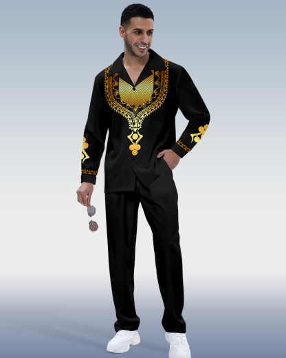 Men's retro printed long sleeve shirt walking suit 68