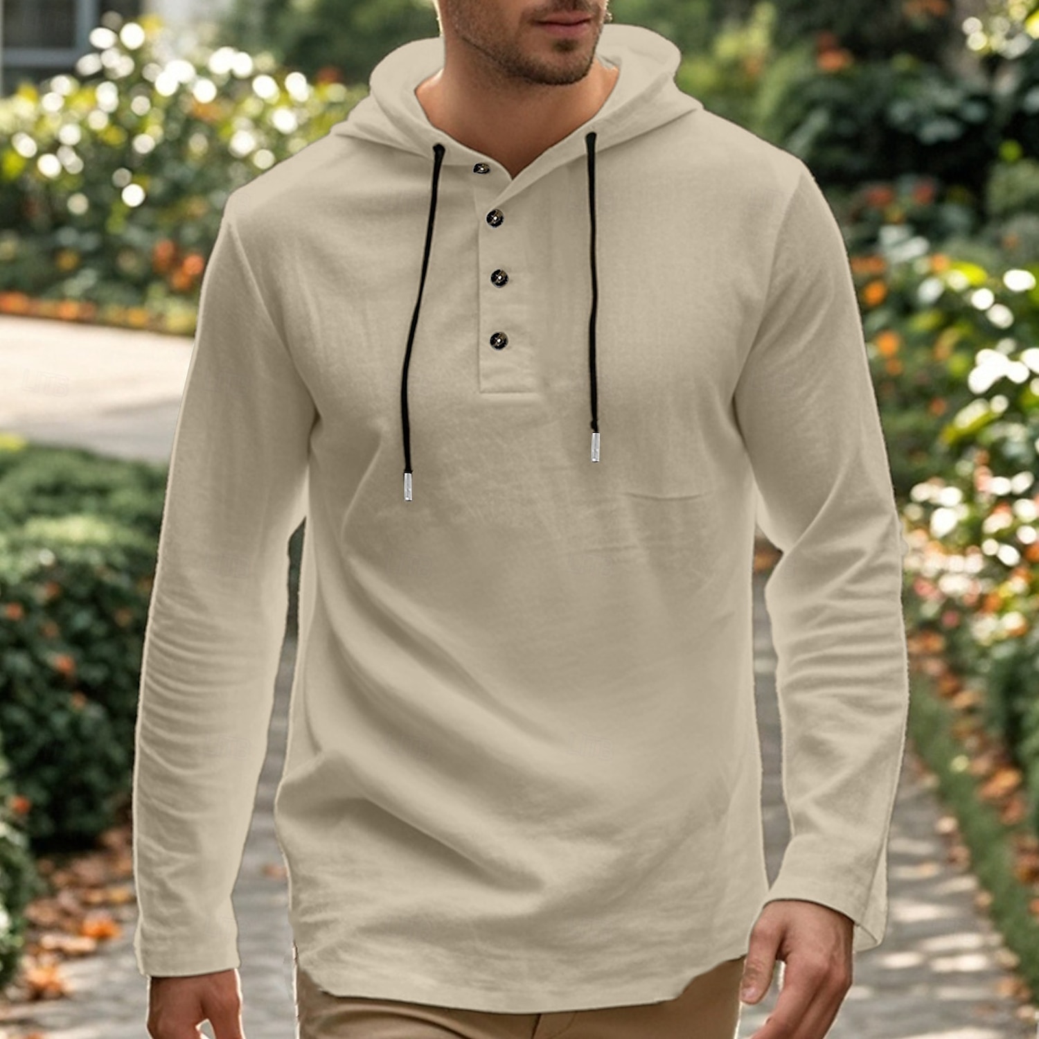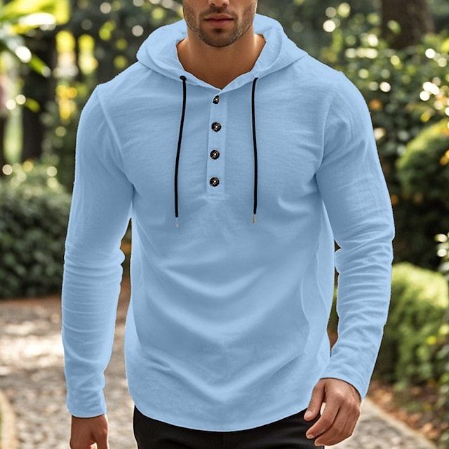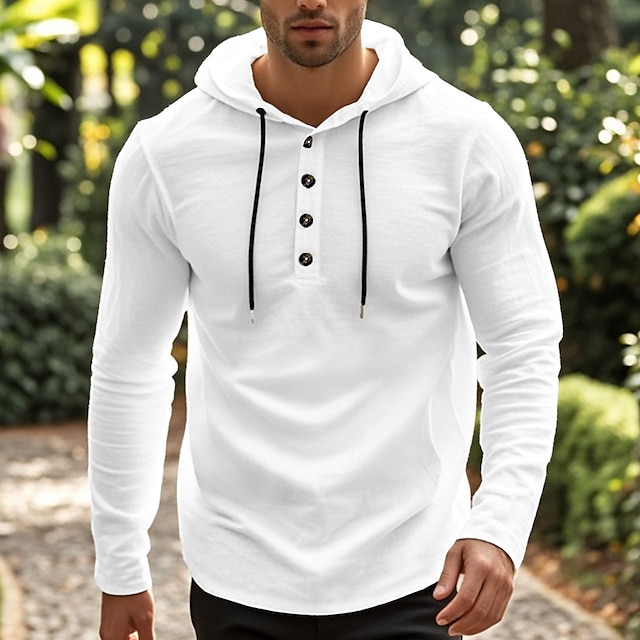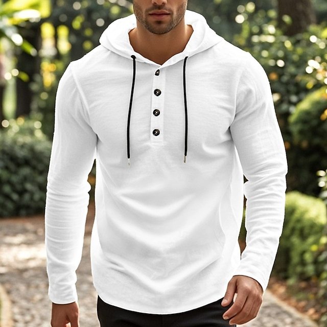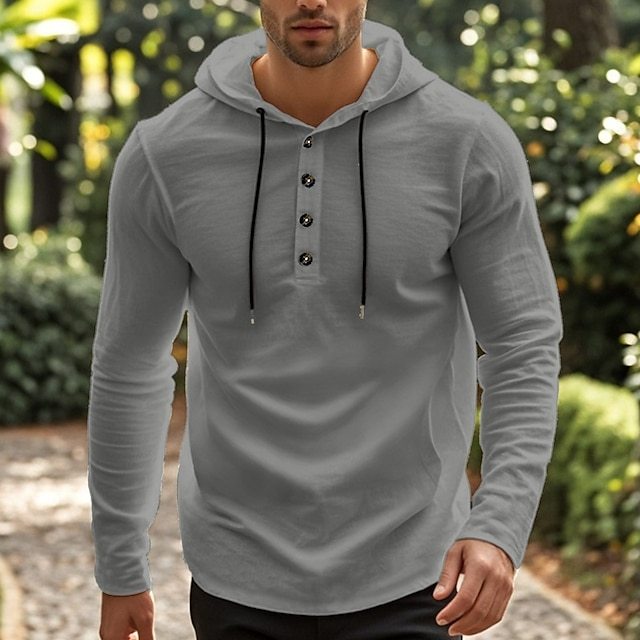 Men's Shirt Beach Wear Hooded Shirt Solid / Plain Color Street Going out Black White Khaki Gray Long-Sleeve Hooded Summer Clothing Apparel Adjustable Drawstring Hood