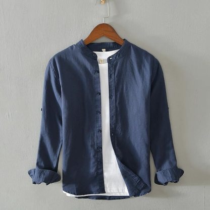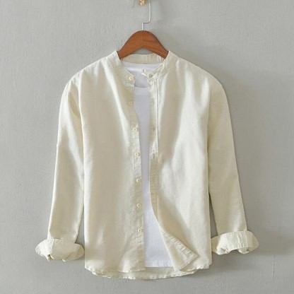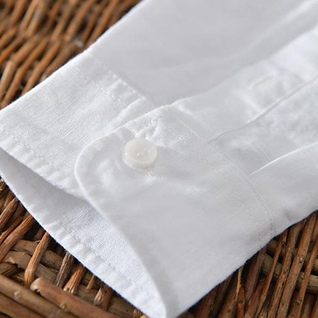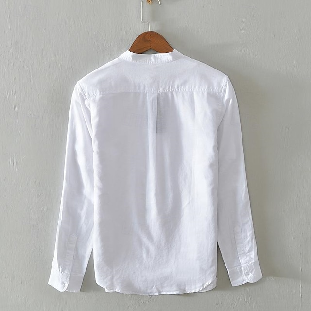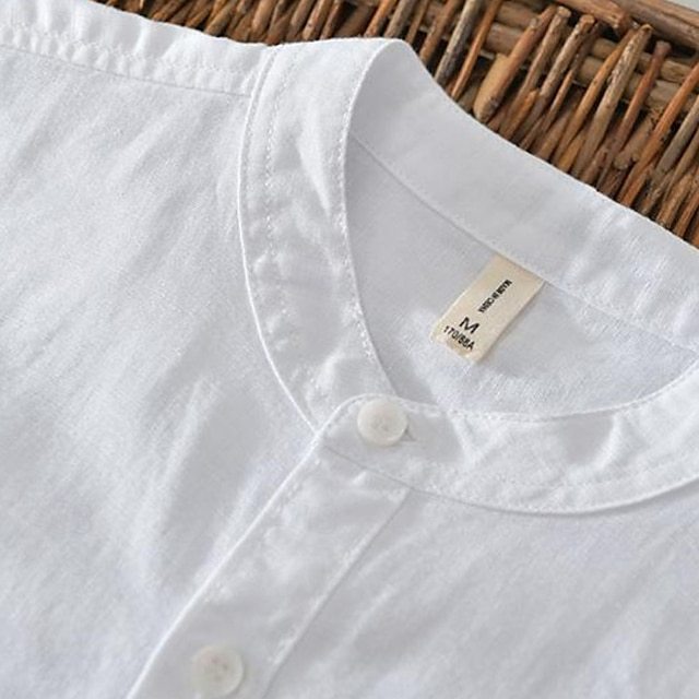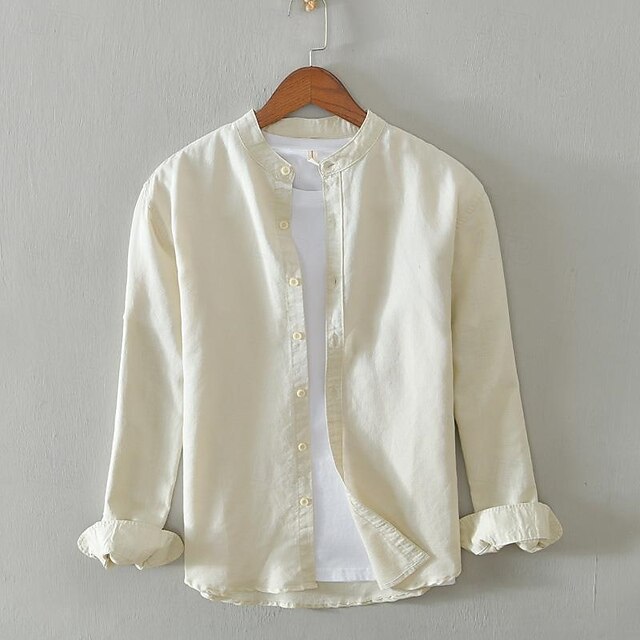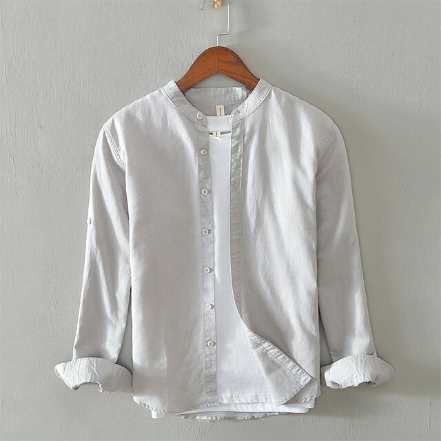 Men's Shirt Linen Shirt Casual Shirt Button Up Shirt Cotton Shirt Plain Vacation Hawaiian White Navy Blue Khaki Gray Long-Sleeve Band Collar Spring Fall Clothing Apparel Button-Down