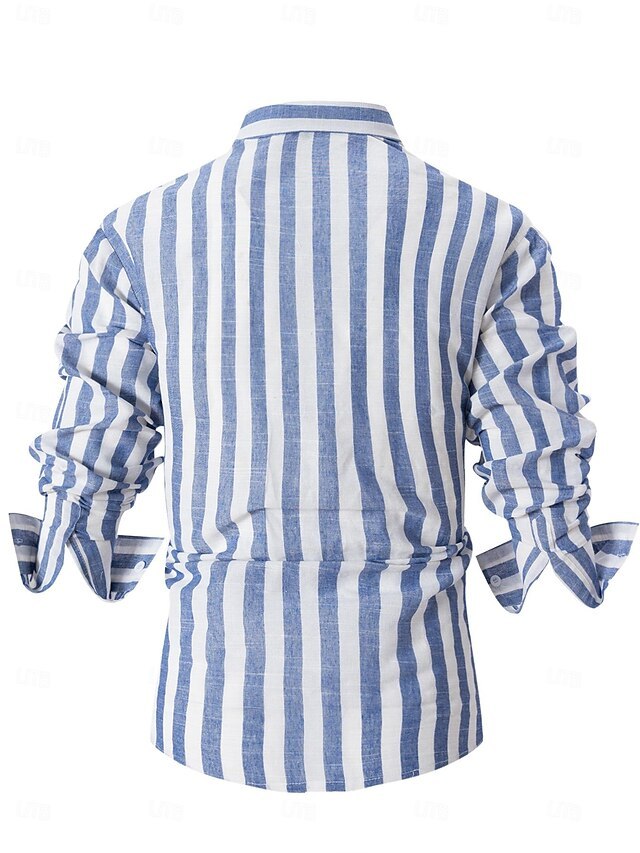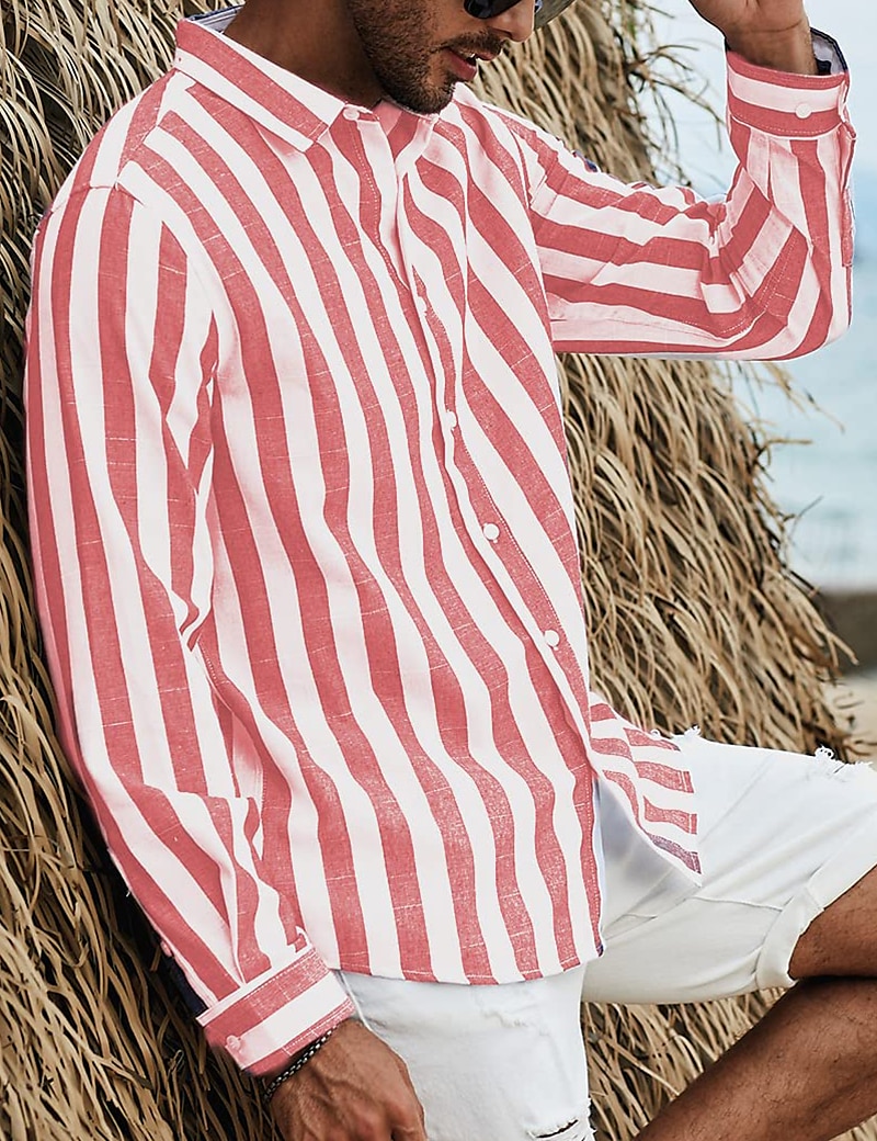 Men's Shirt Linen Shirt Summer Shirt Beach Wear Button Up Shirt Light Pink Black Pink Sky Blue Dark Grey Long-Sleeve Striped Collar Vacation Curise Clothing Apparel Cotton And Linen Fashion Leisure