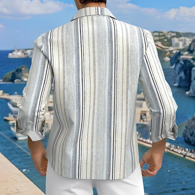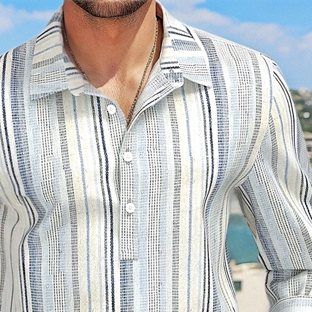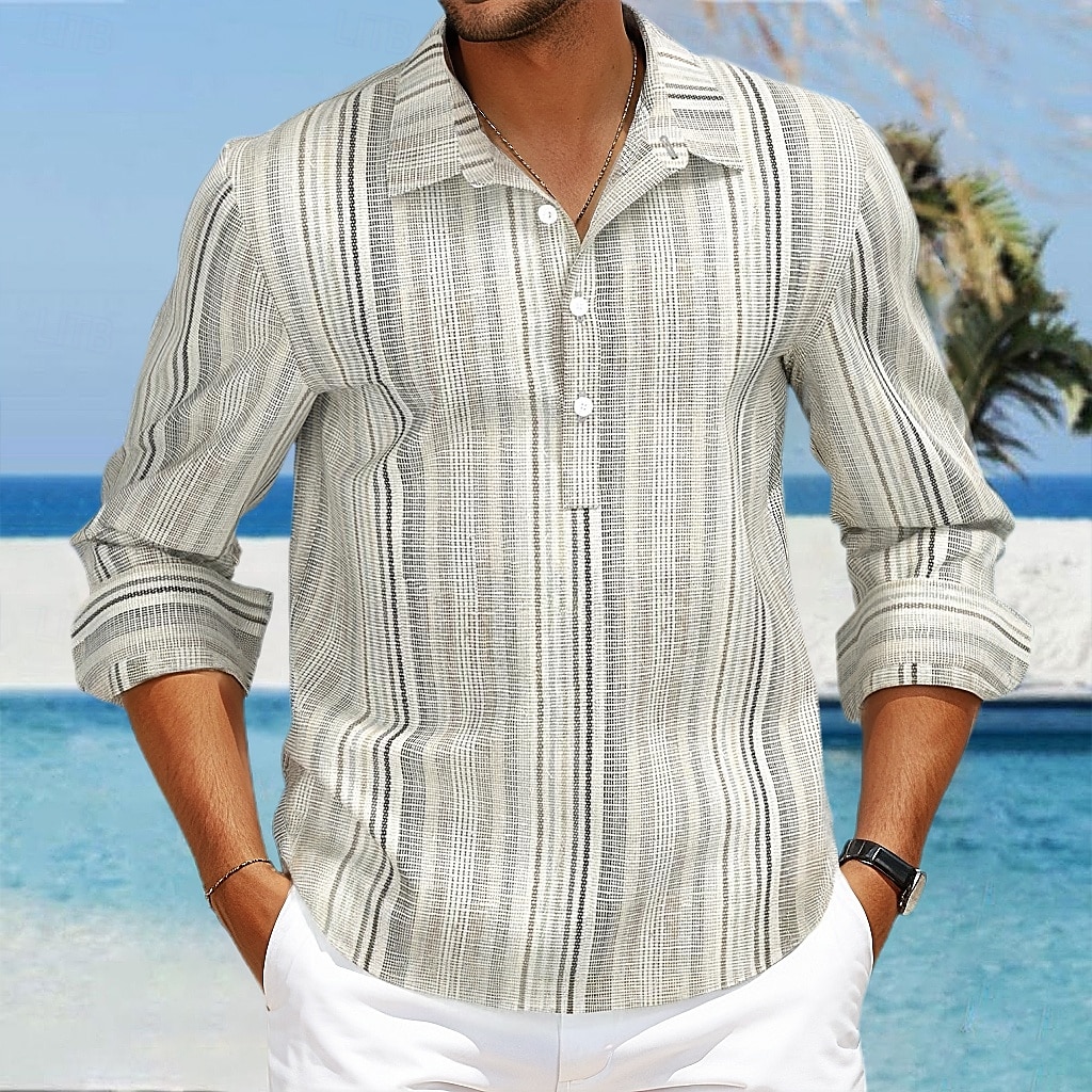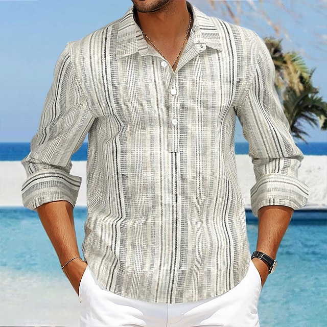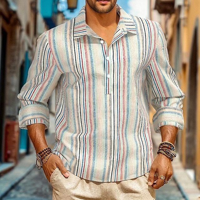 Fabric:Cotton And Linen,Tops Type:Beach Wear,Summer Shirt,Linen Shirt,Shirt,Gender:Men's,Occasion:Vacation,Holiday,Daily,Casual,Streetwear,Style:Fashion,Comfortable,Neckline:Lapel,Sleeve Length:Long Sleeve,Look After Me:Wet and Dry Cleaning,Washable,Pattern:Stripe,Season:Spring & Summer,