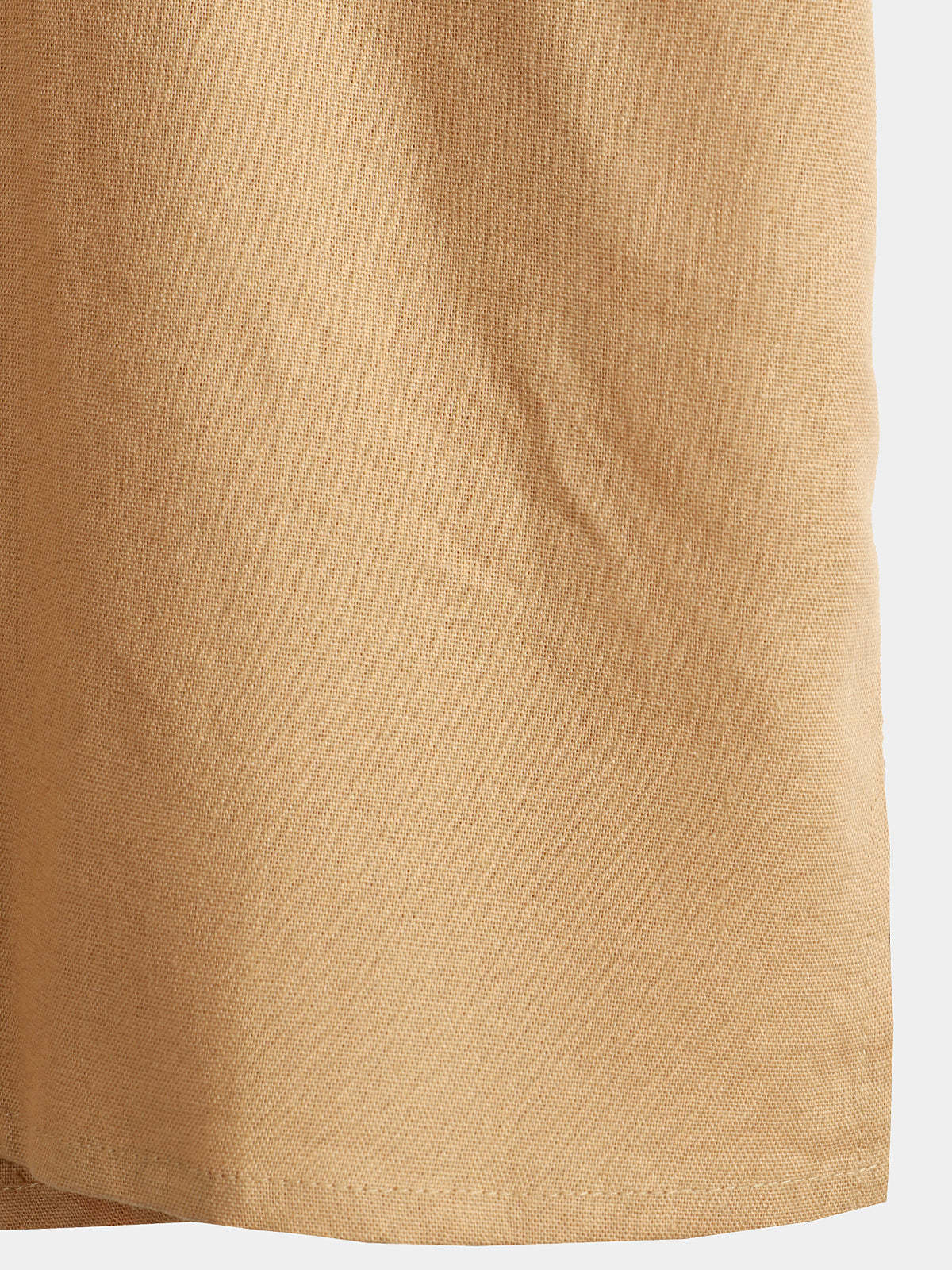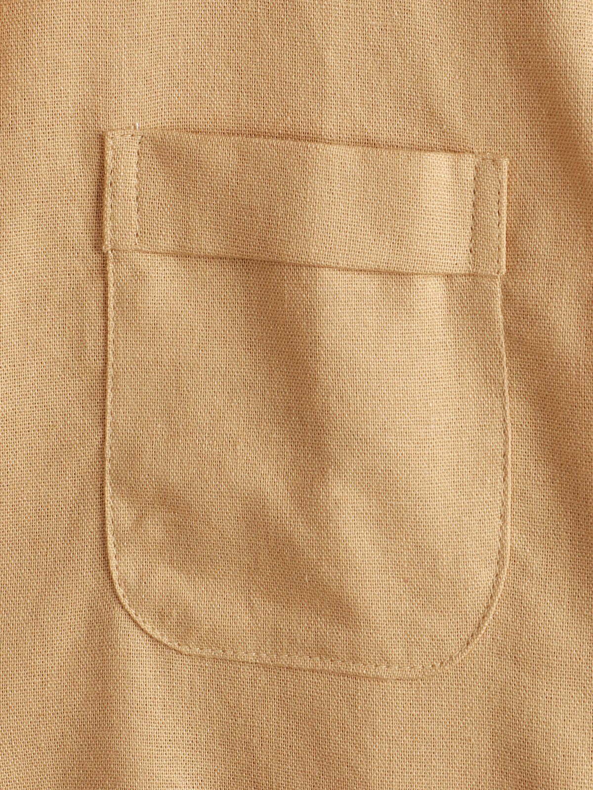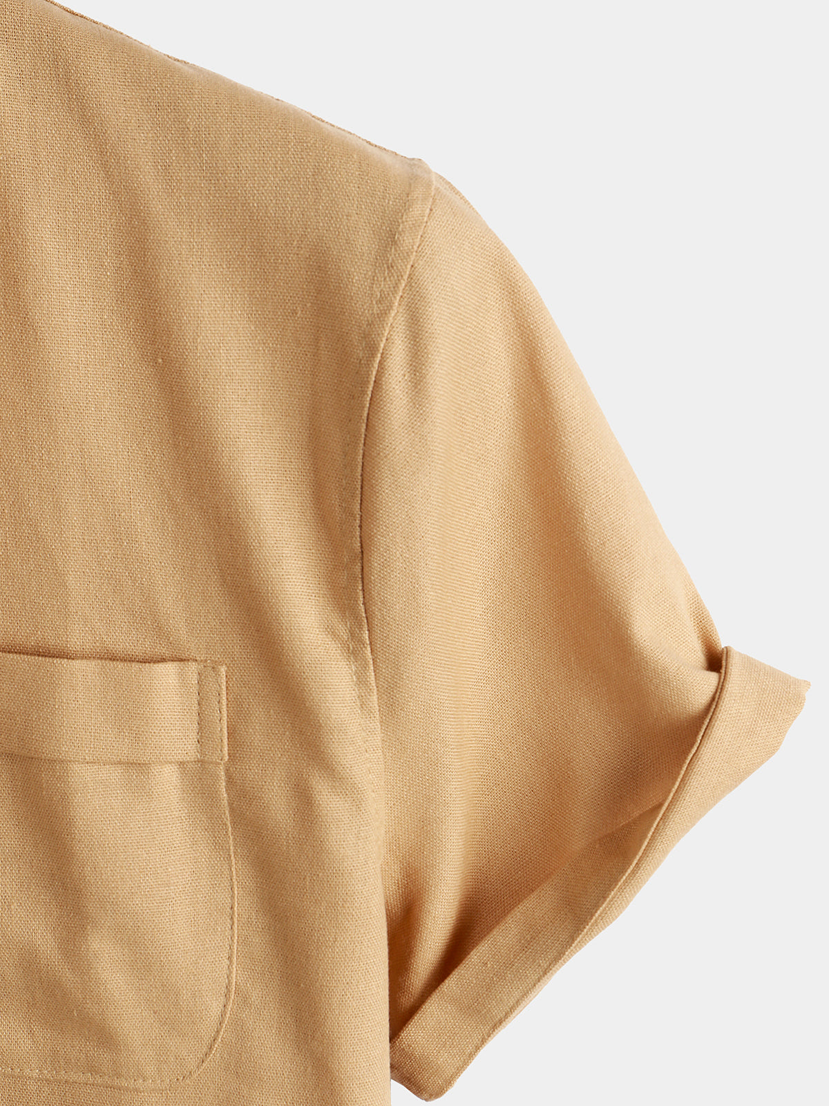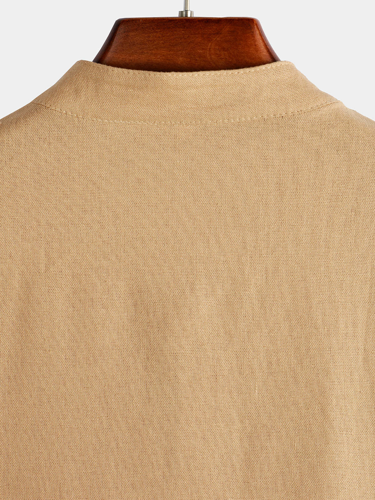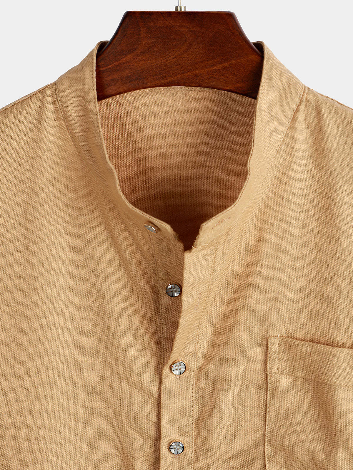 Men's Solid Color Stand Collar Half Button Pocket Front Shirt