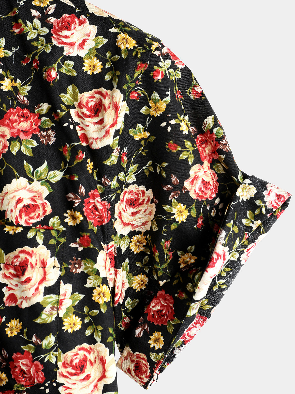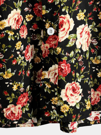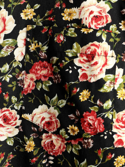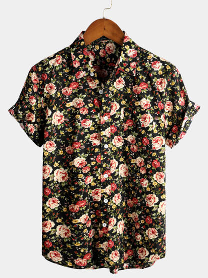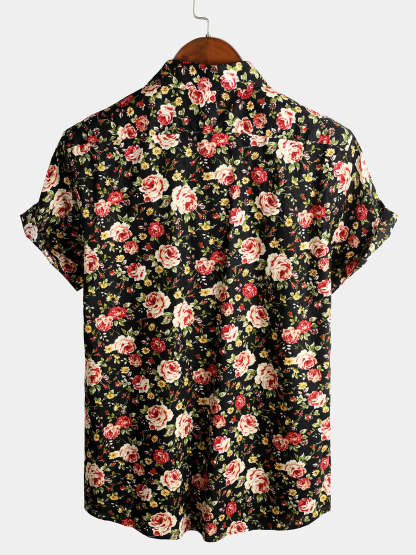 Men's Rose Cotton Pocket Short Sleeve Shirt