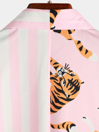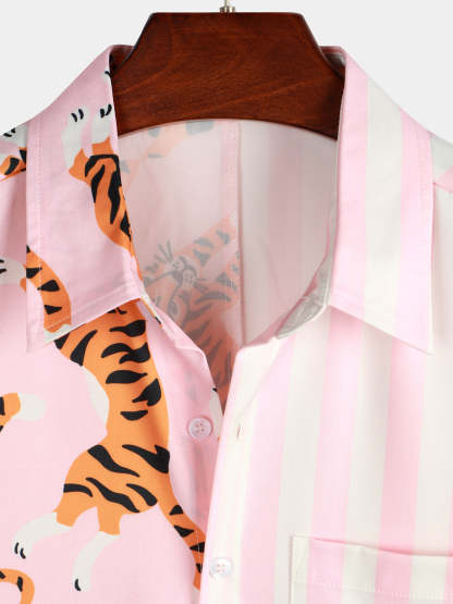 Men's Tiger & Striped Print Holiday Pocket Shirt – Mentalmens