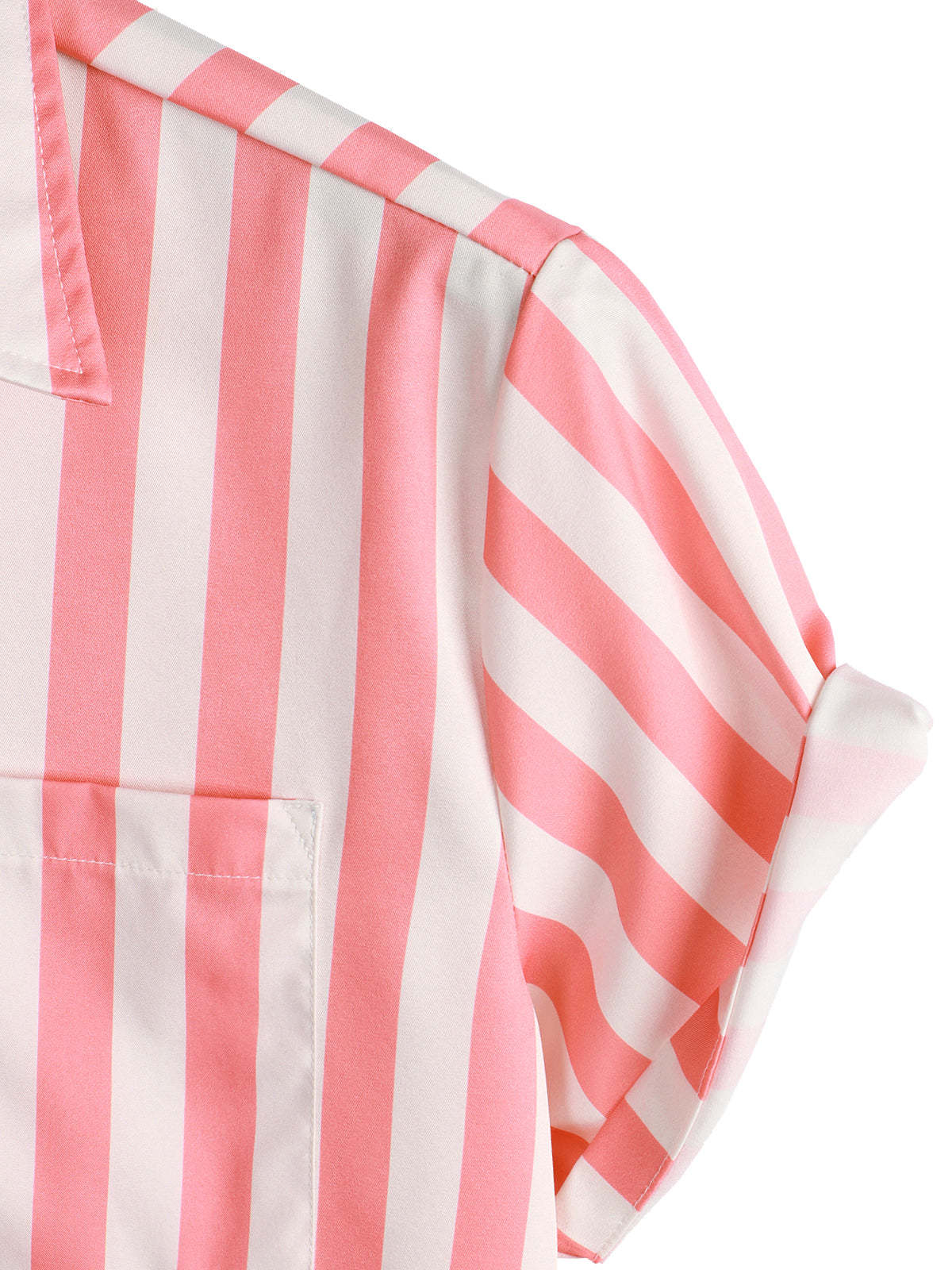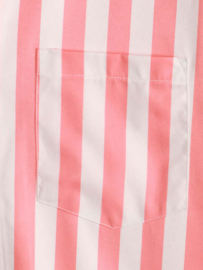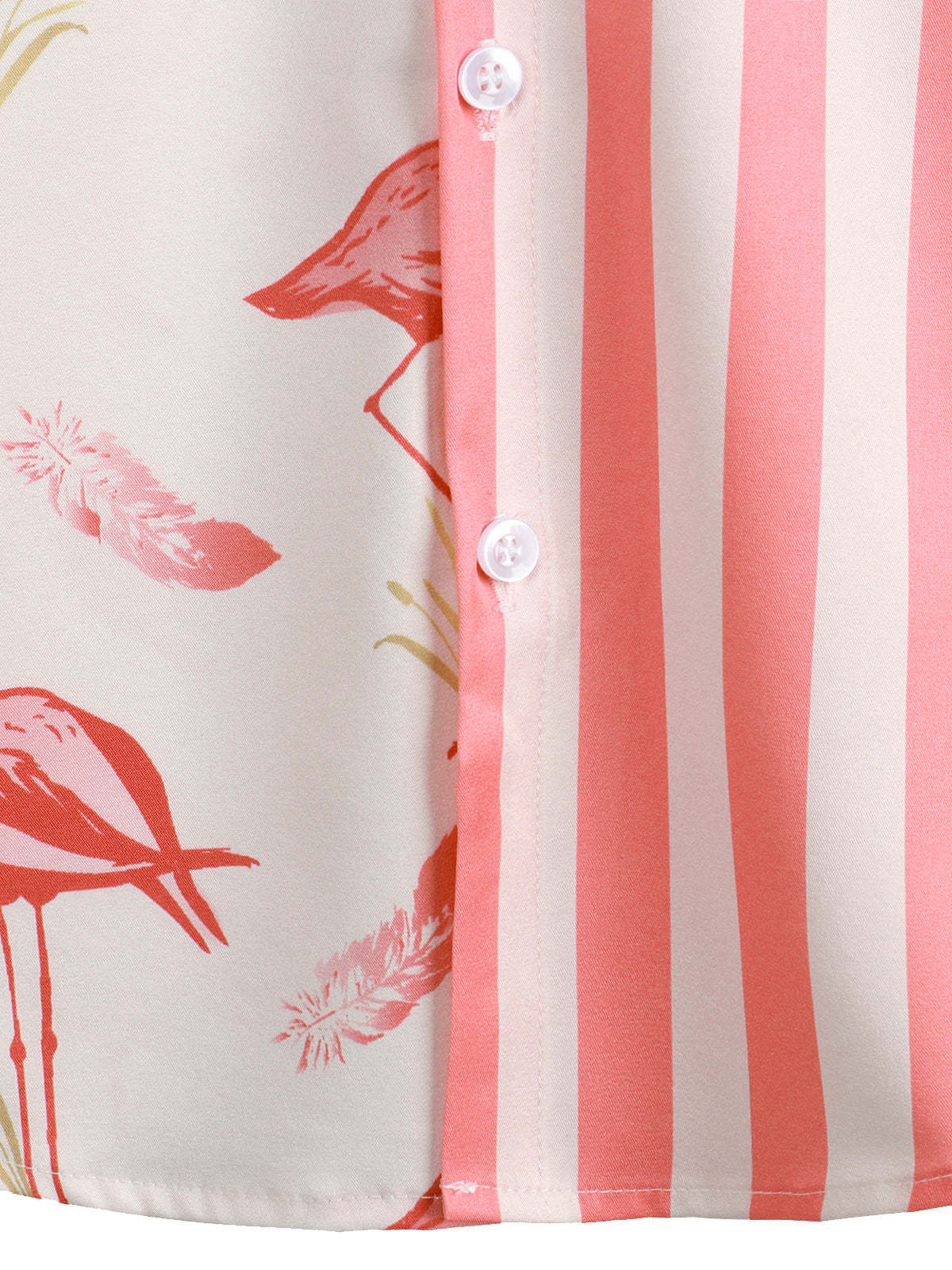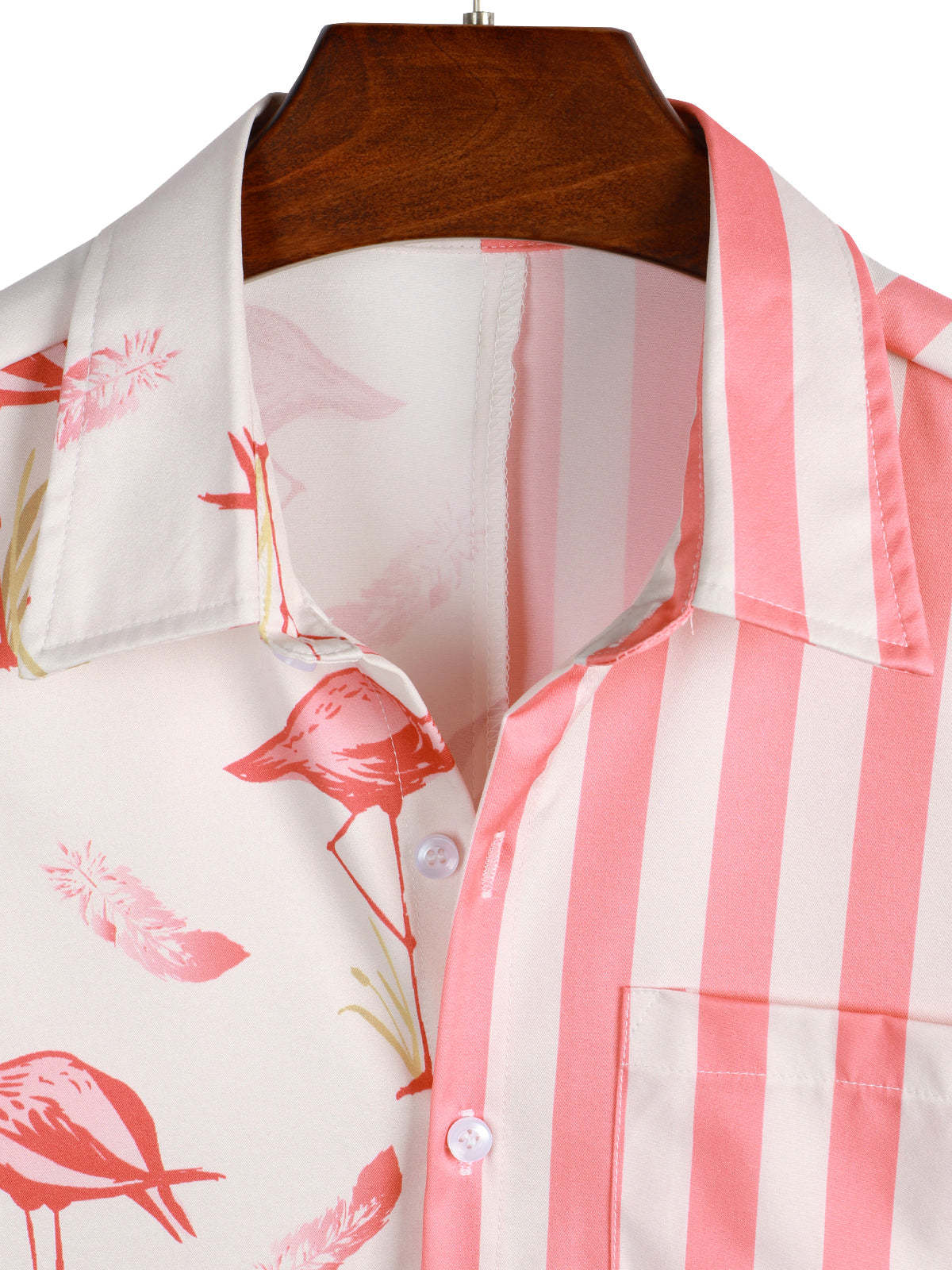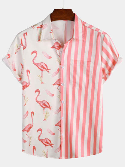 Men's Pink Flamingo & Striped Print Pocket Short Sleeve Shirt