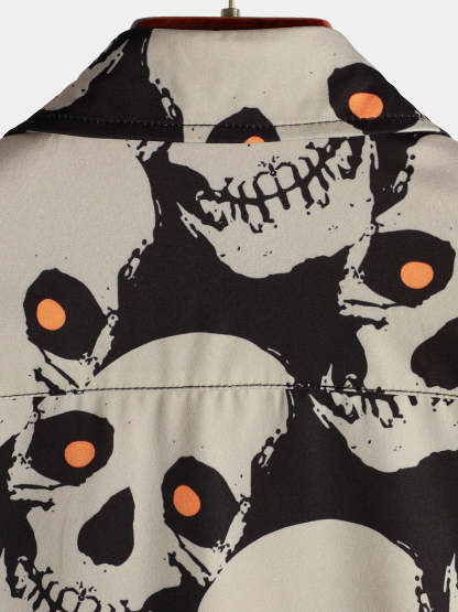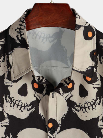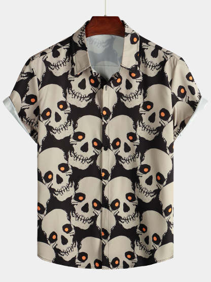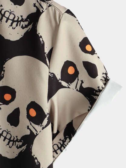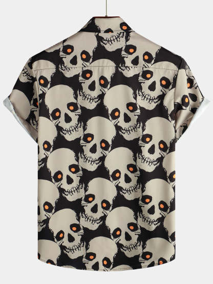 Men's Skull Cool Graphic Button Up Short Sleeve Punk Rock Art Black Hawaiian shirt