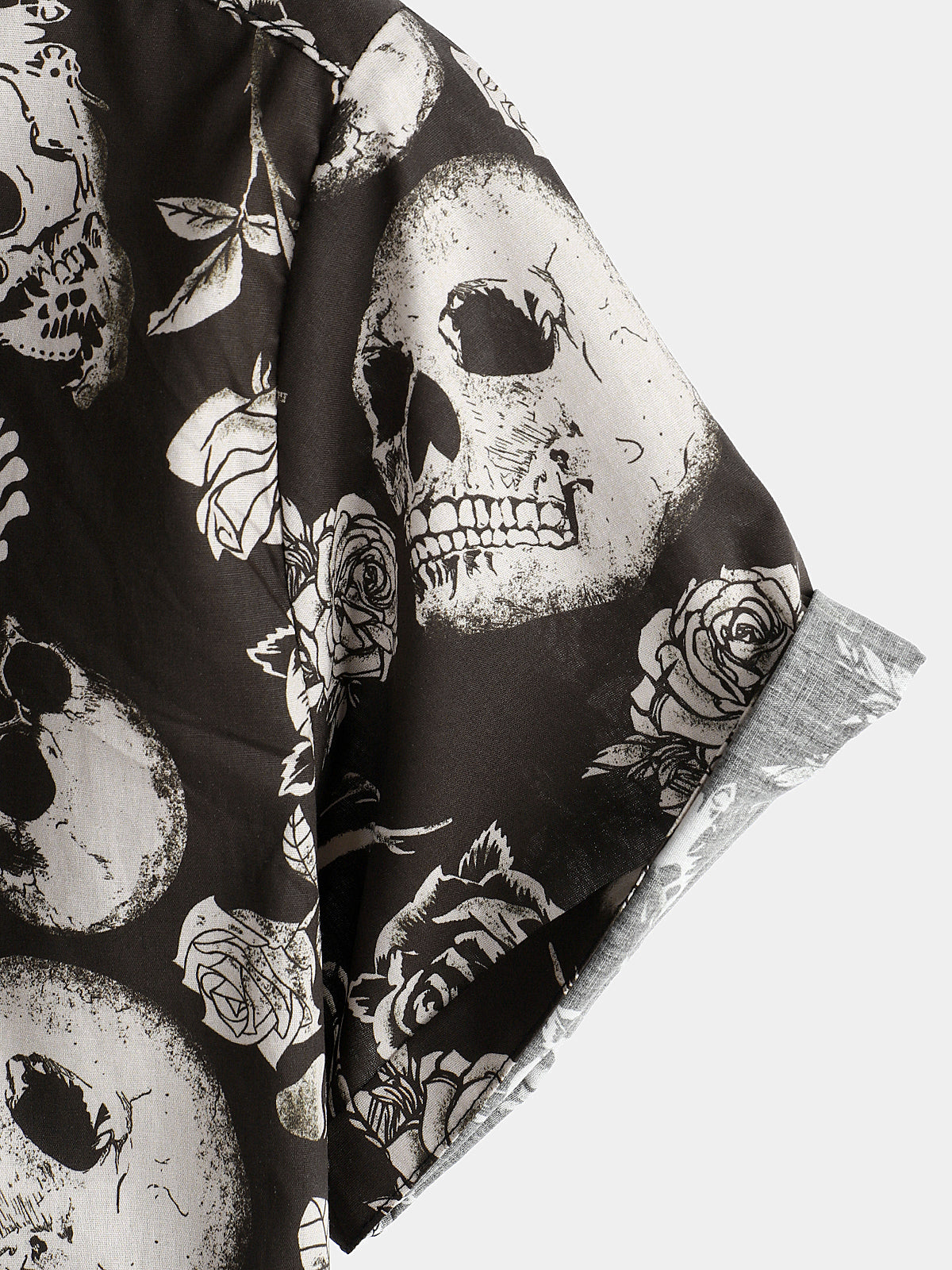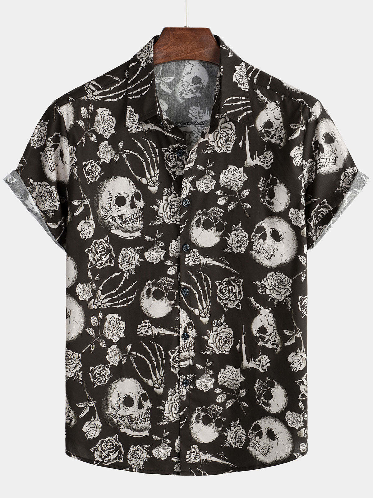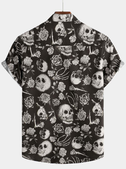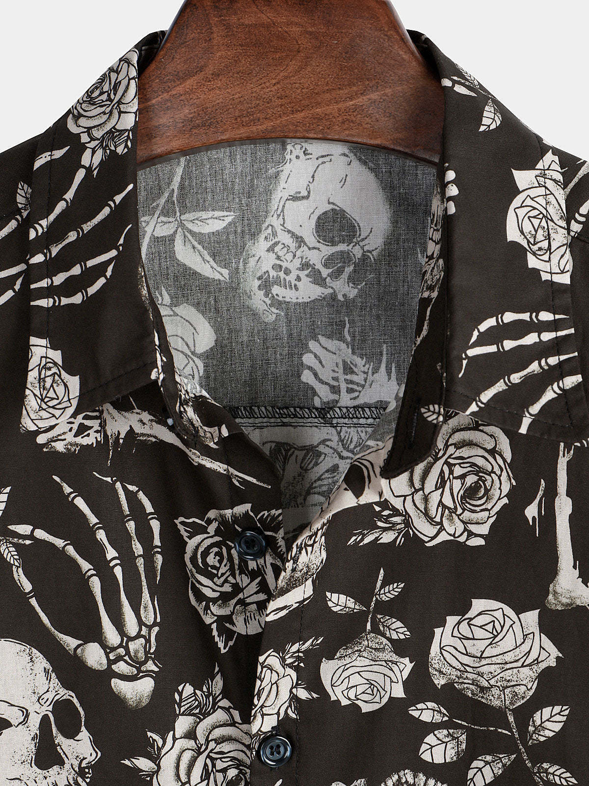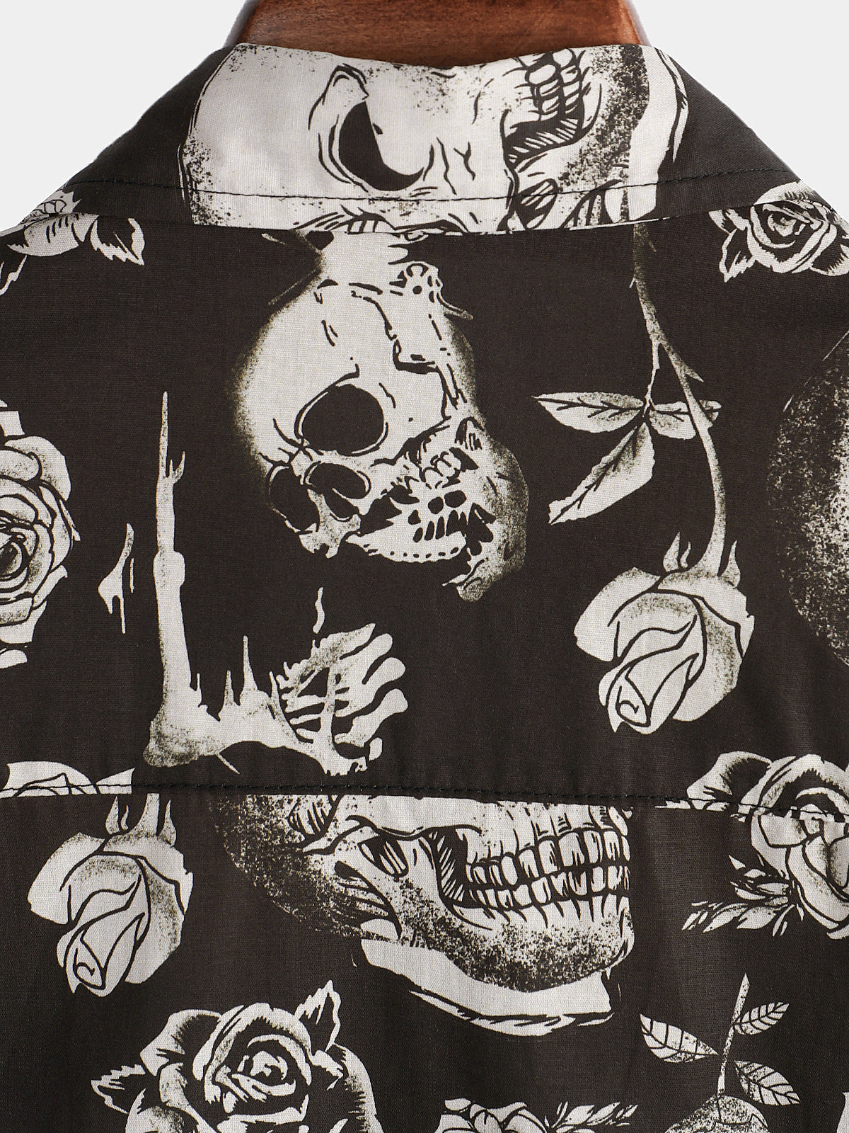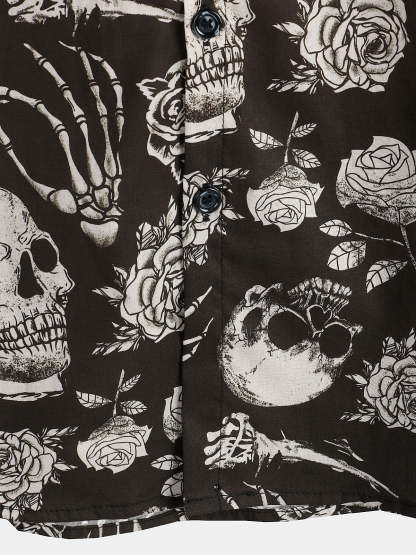 Men's Skull Rose Floral Punk Rock and Roll Cool Button Up Shirt