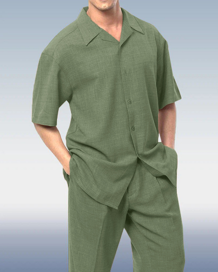 Men's Solid Color Short Sleeve Shirt Walking Set 4 Colors 433
