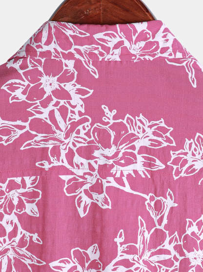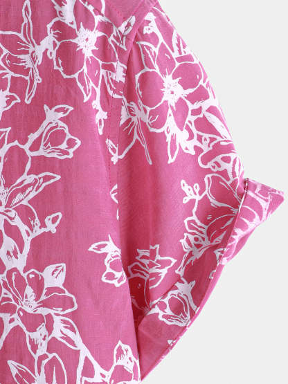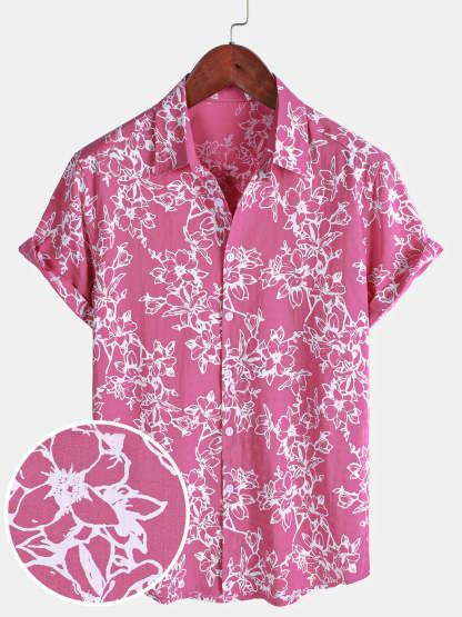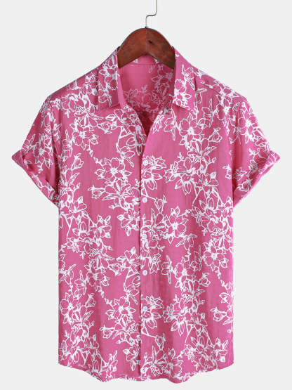 Men's Summer Casual Floral Holiday Beach Short Sleeve Cotton Shirt