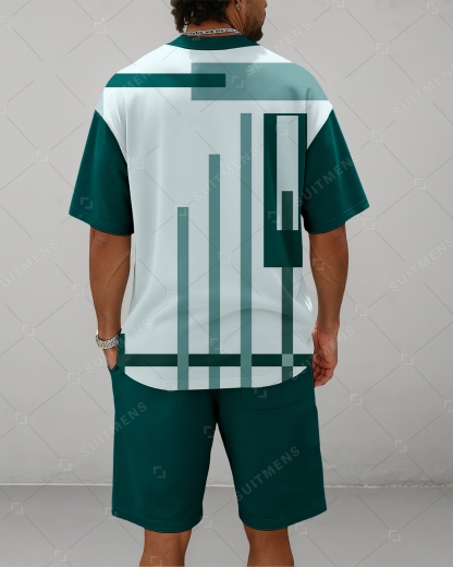 Men's Summer Colorblock Printed Round Neck Suit 062