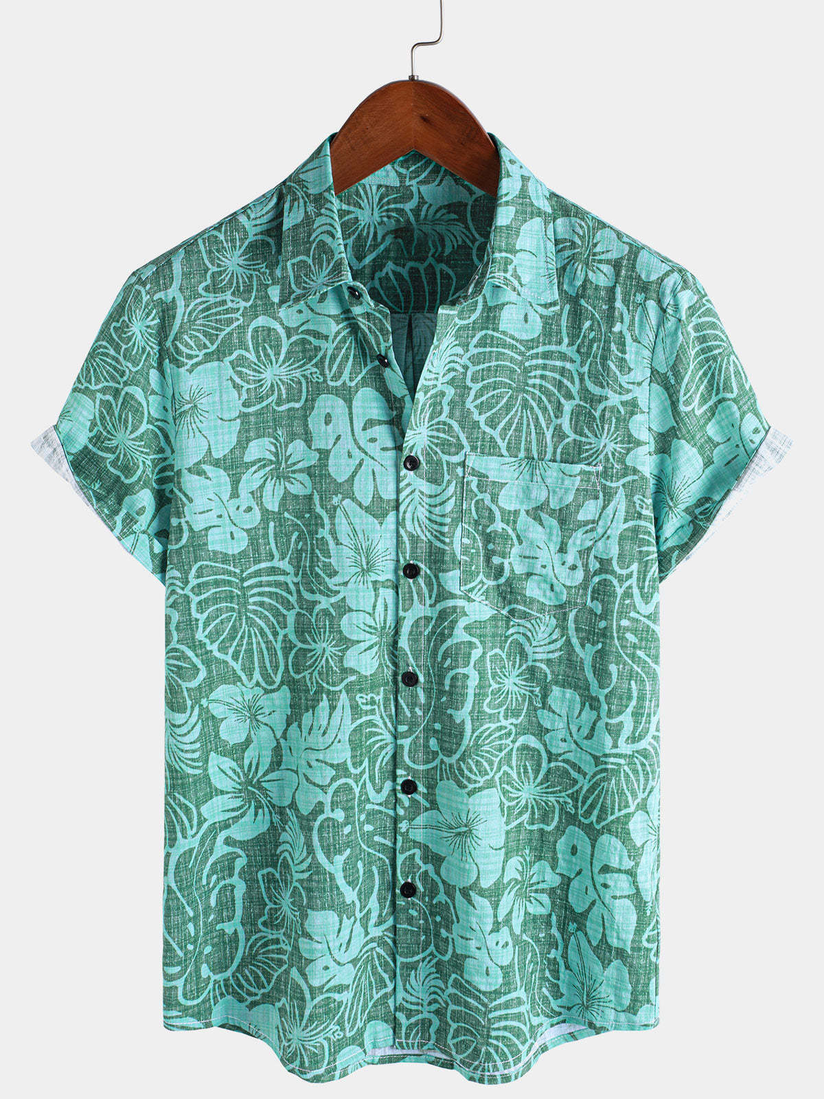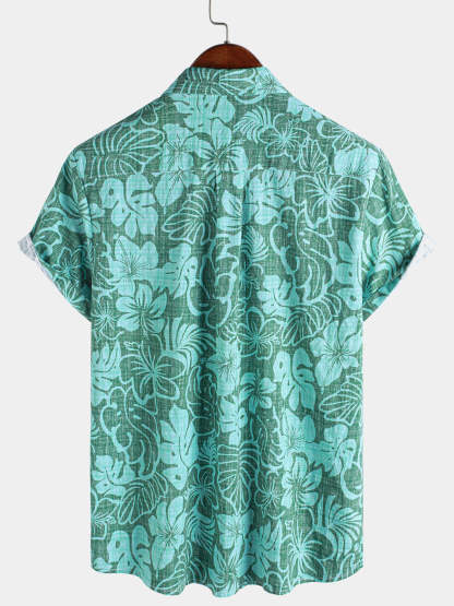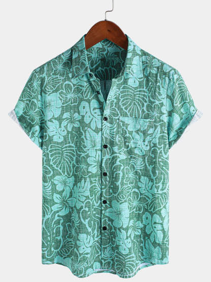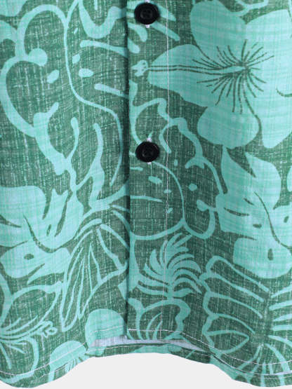 Men's Summer Green Tropical Beach Hawaiian Short Sleeve Shirt