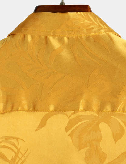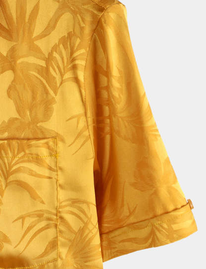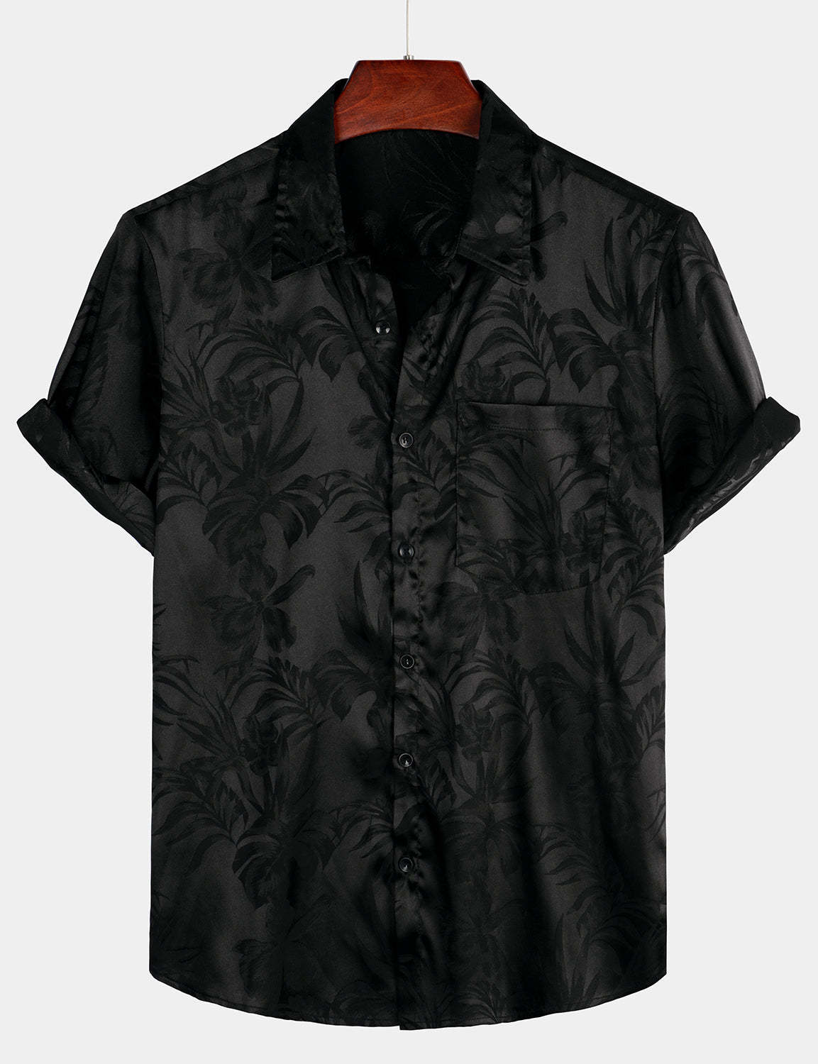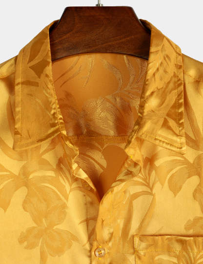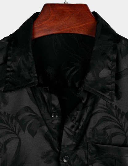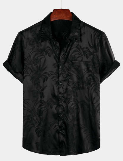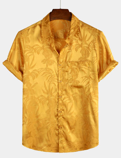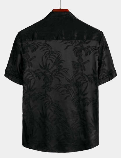 Men's Summer Jacquard Casual Button Up Pocket Floral Short Sleeve Beach Shirt