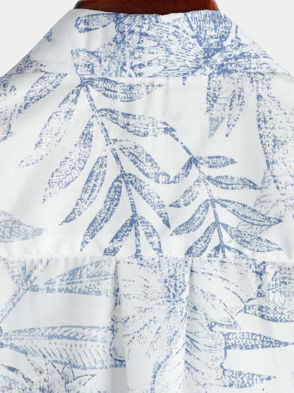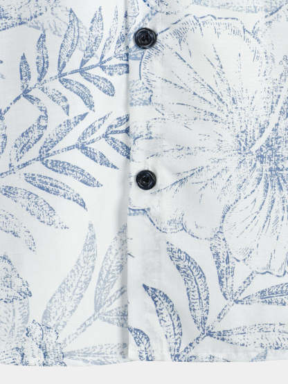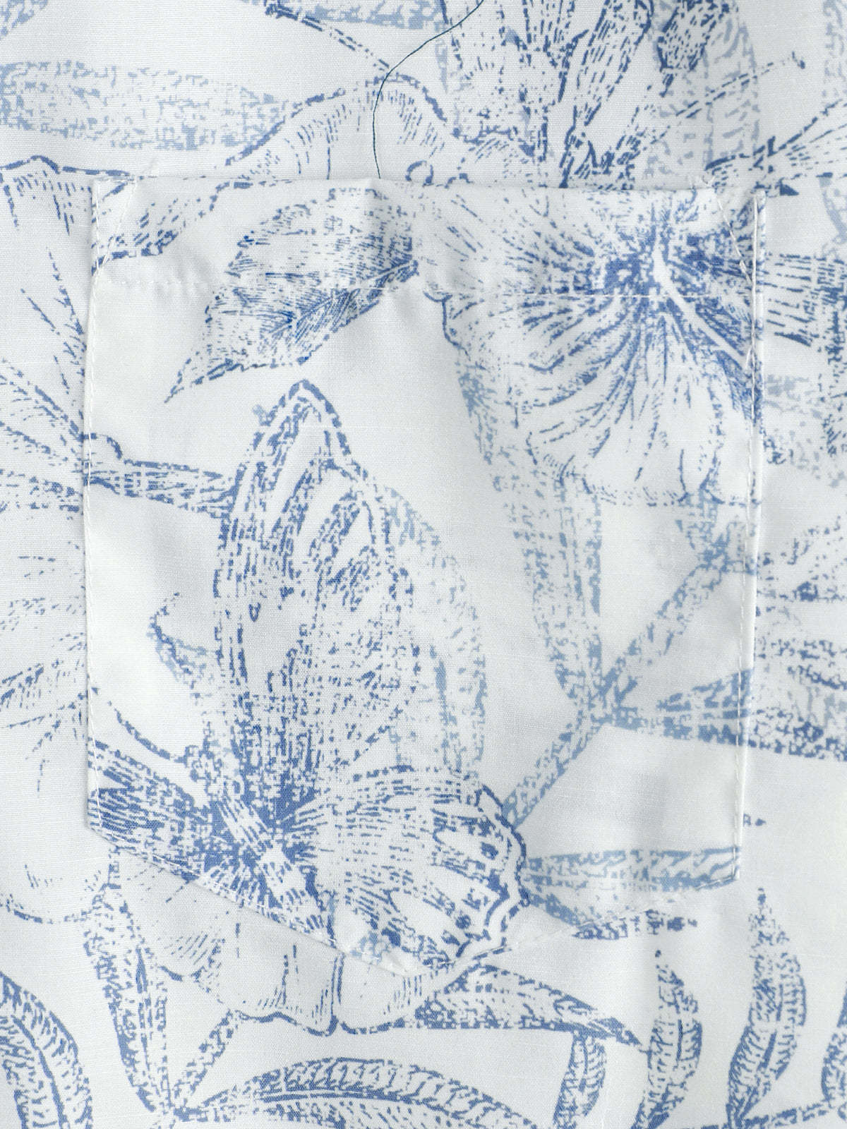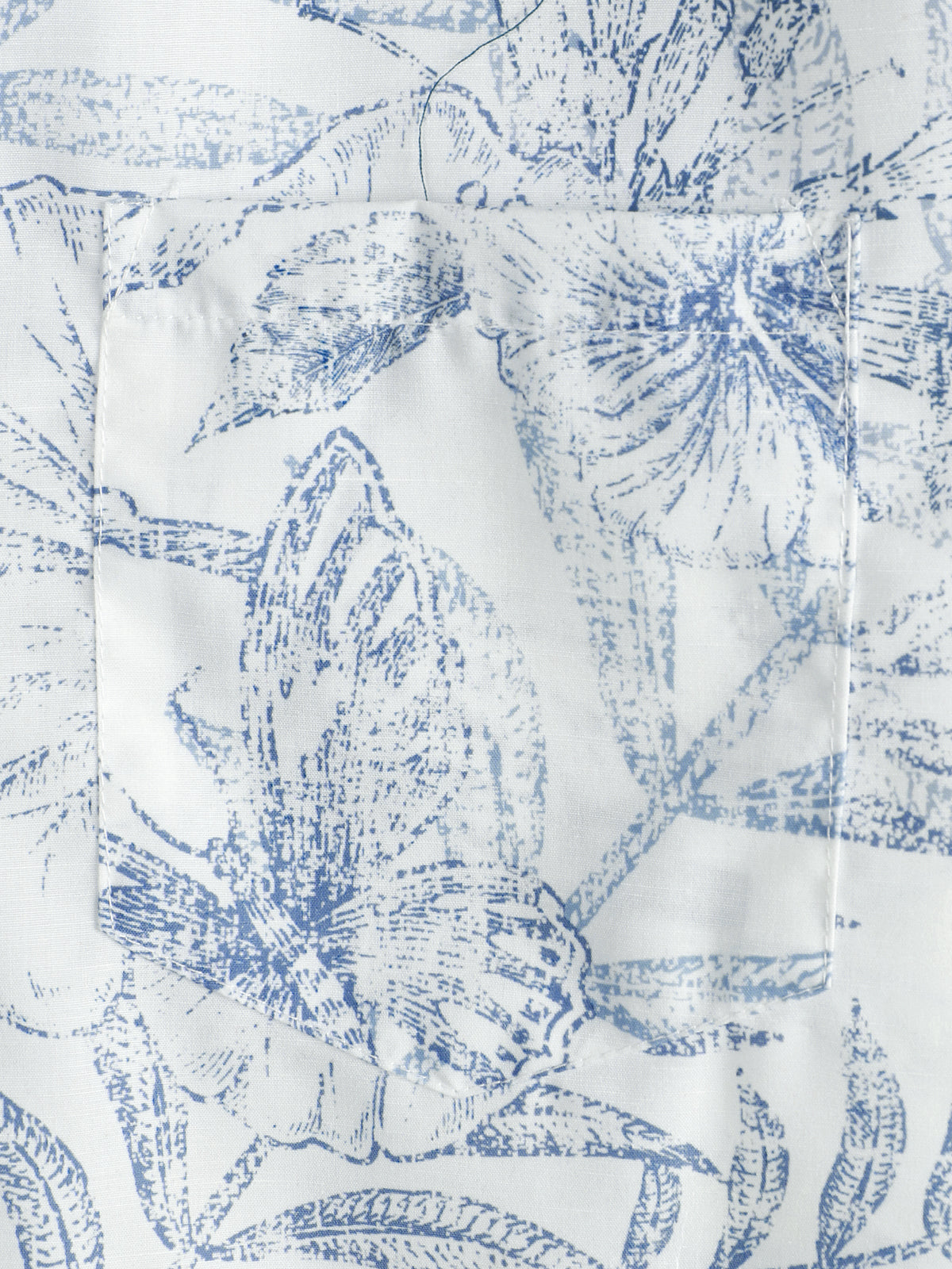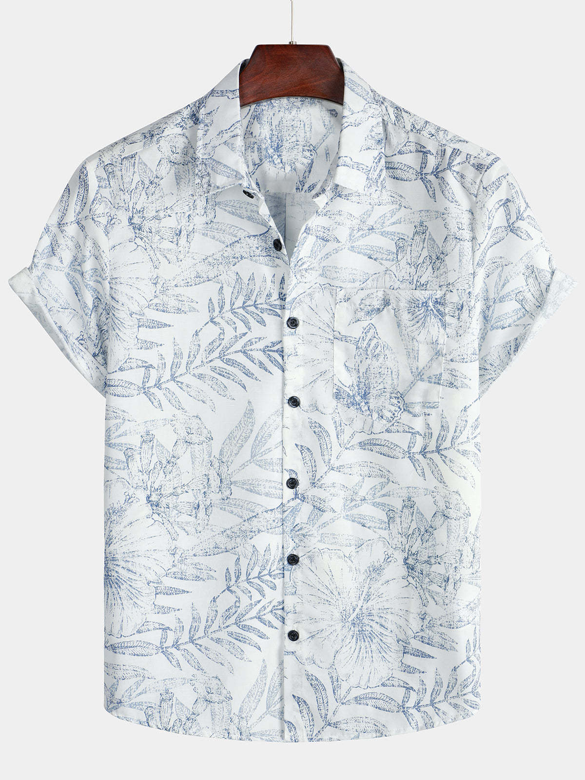 Men's Summer Retro Floral Print Pocket Floral Short Sleeve Button Up White Hawaiian Shirt