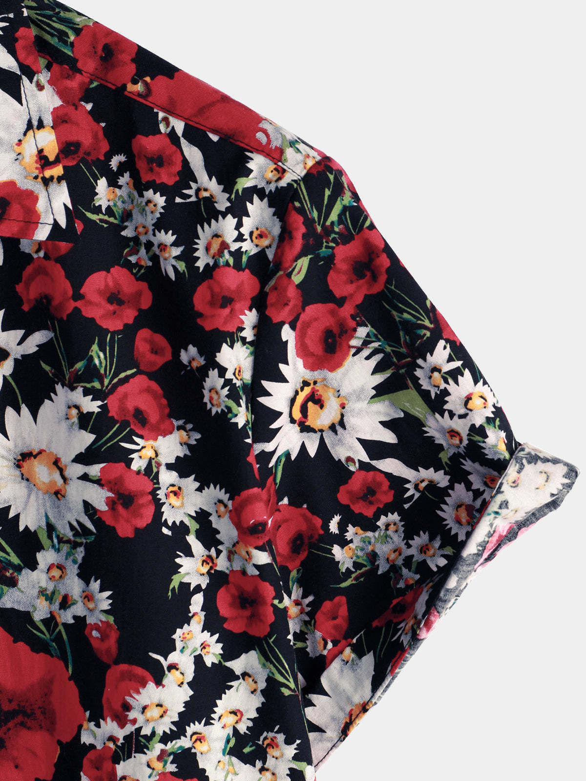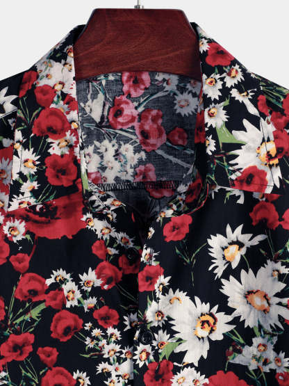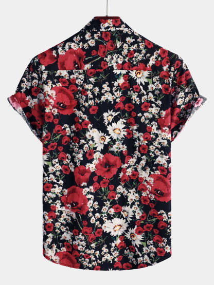 Men's Summer Rose Daisy Flower Print Casual Floral Short Sleeve Shirt