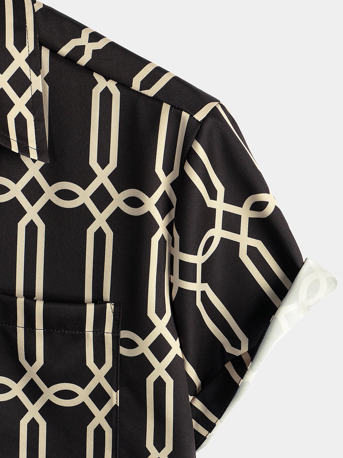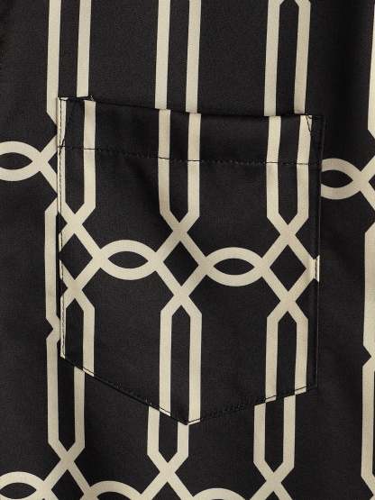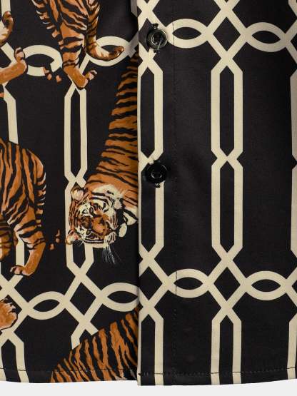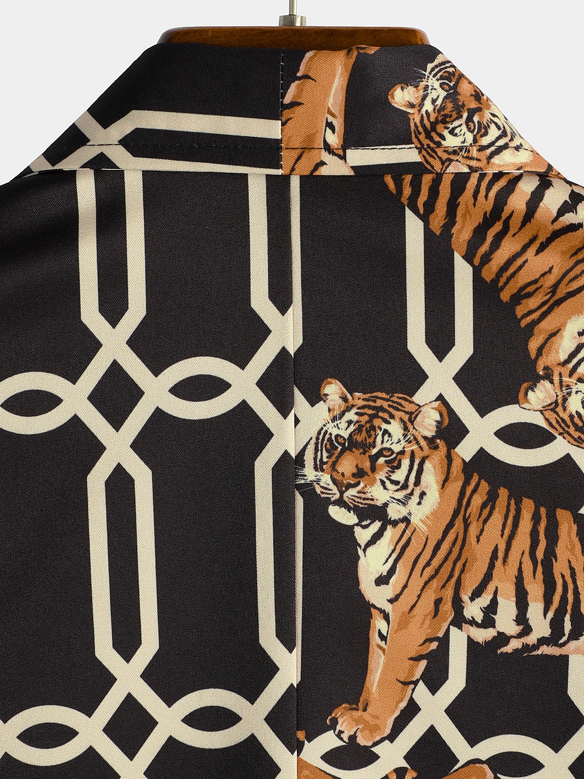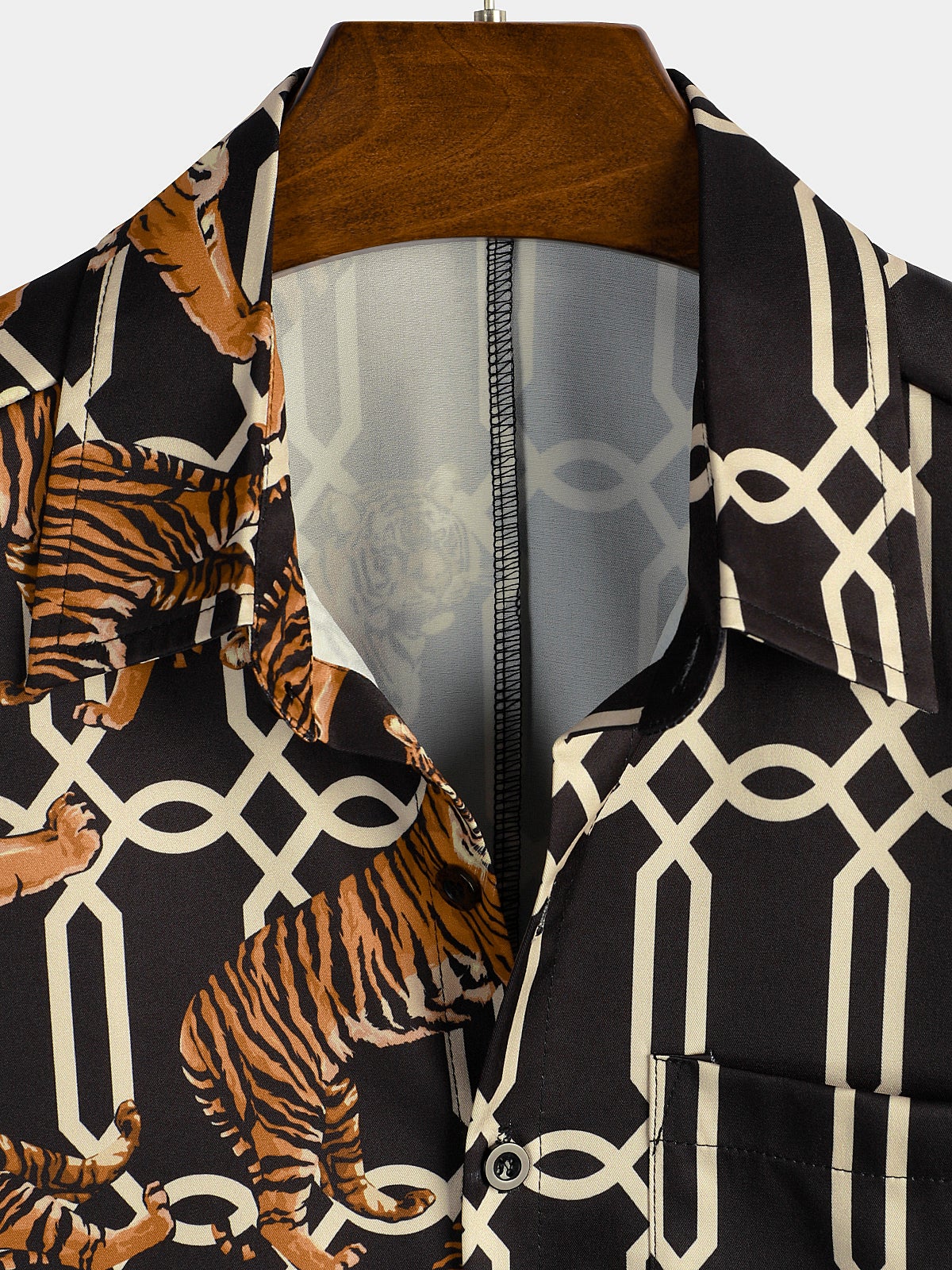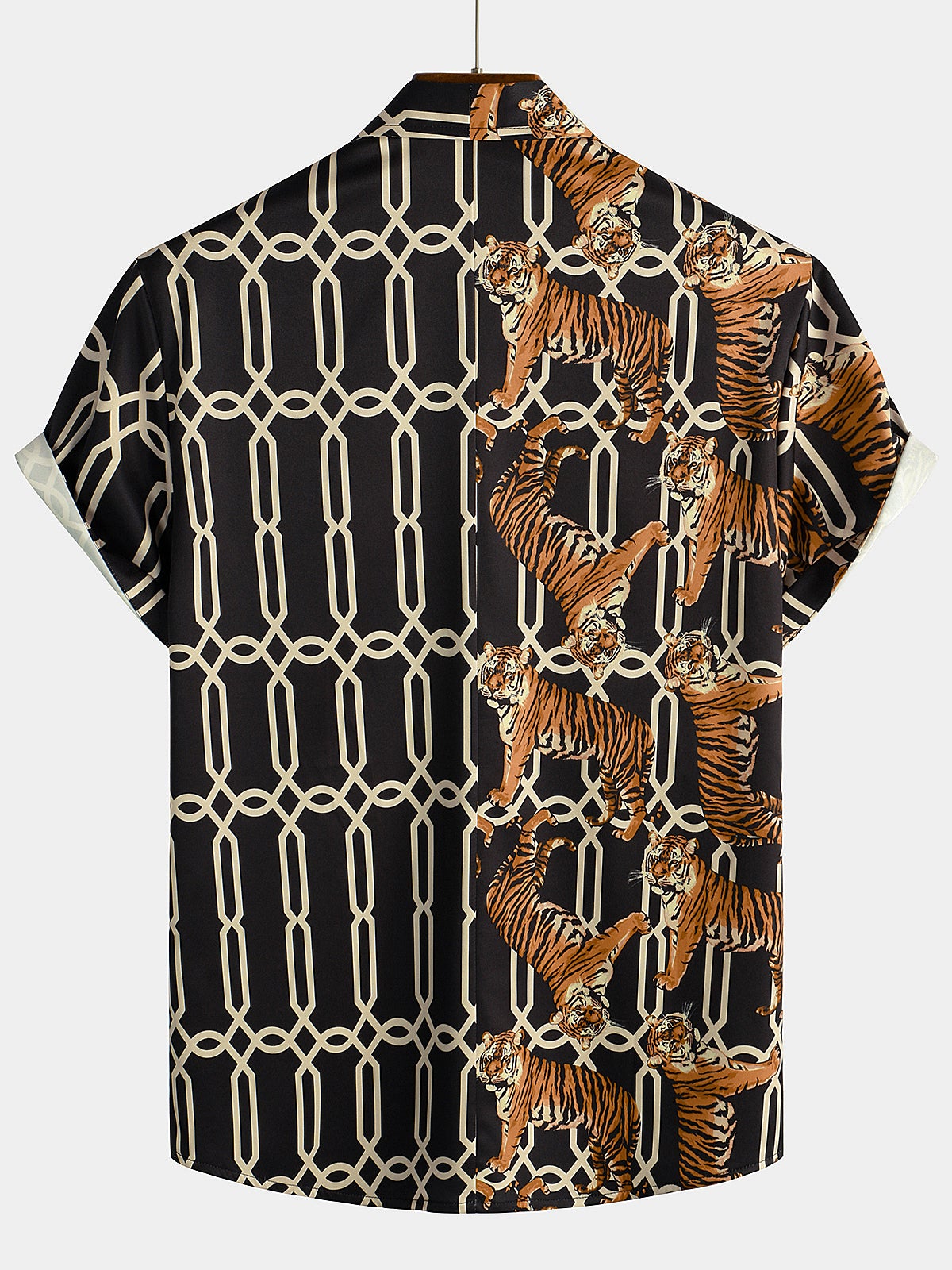 Men's Casual Tiger Print Pocket Short Sleeve Shirt