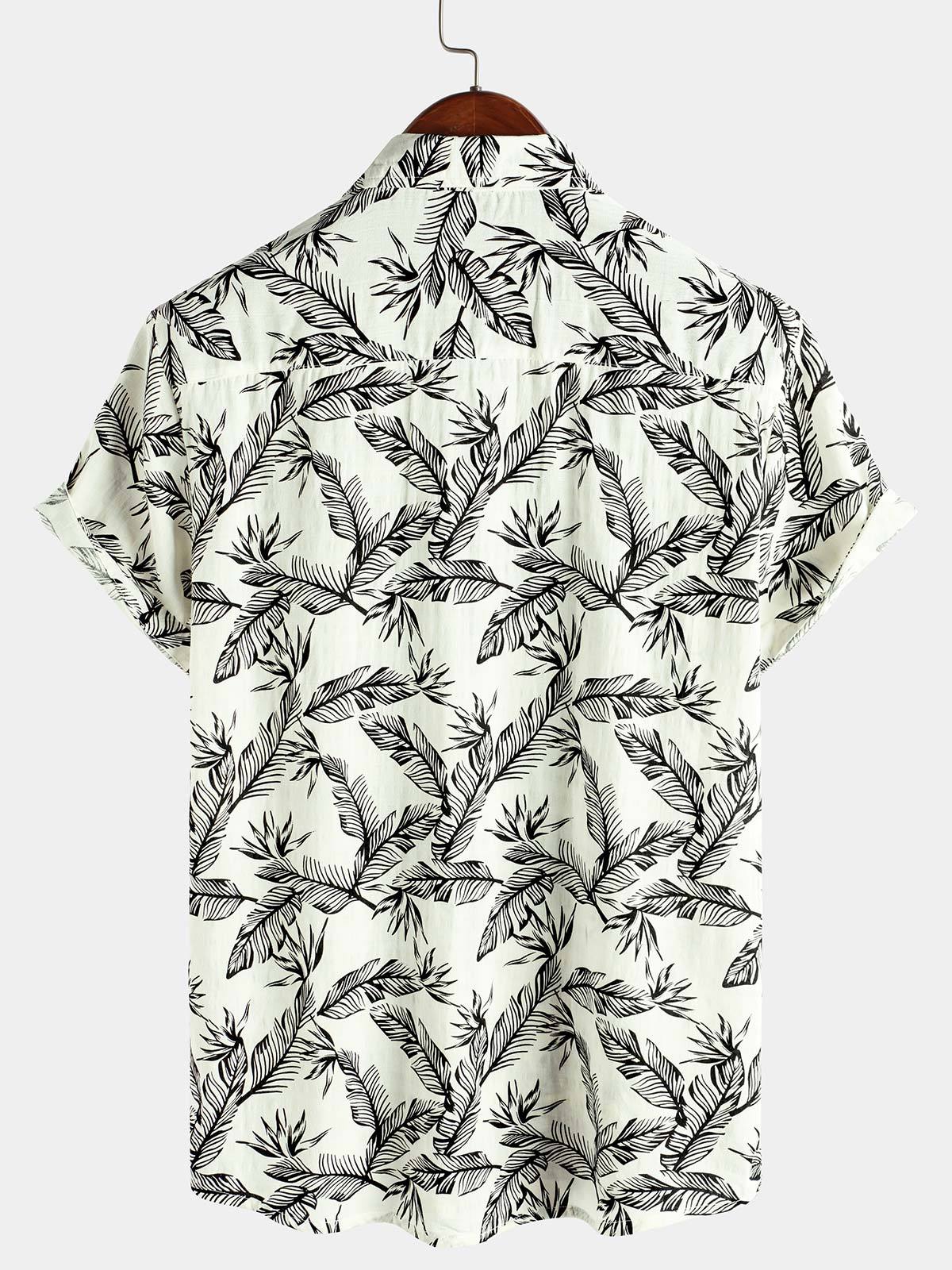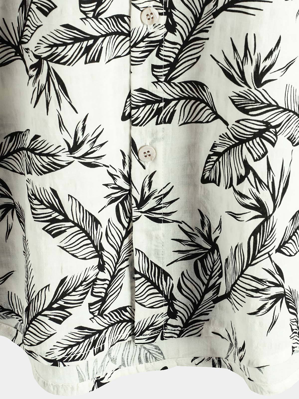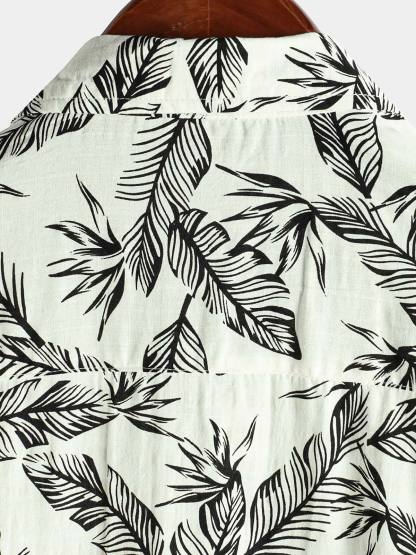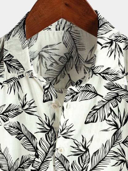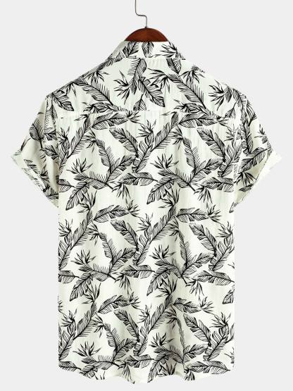 Men's Tropical Black Leaf Short Sleeve Summer Hawaiian Shirt