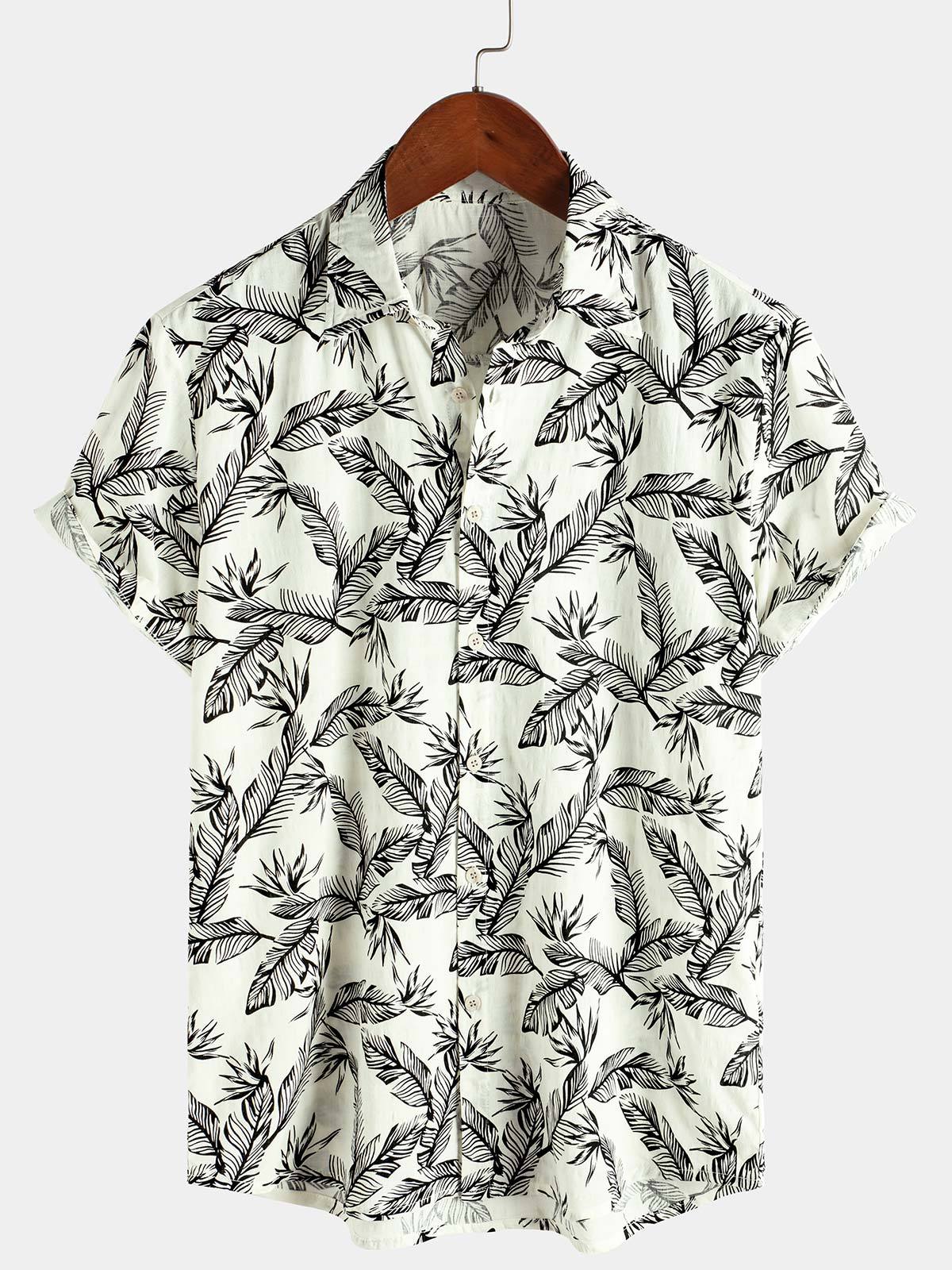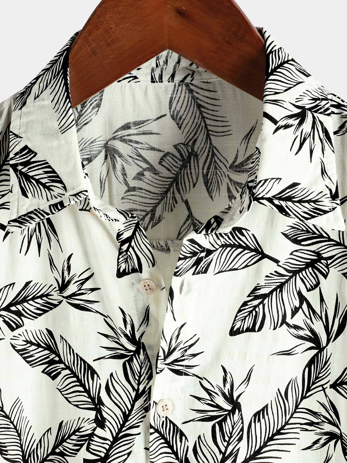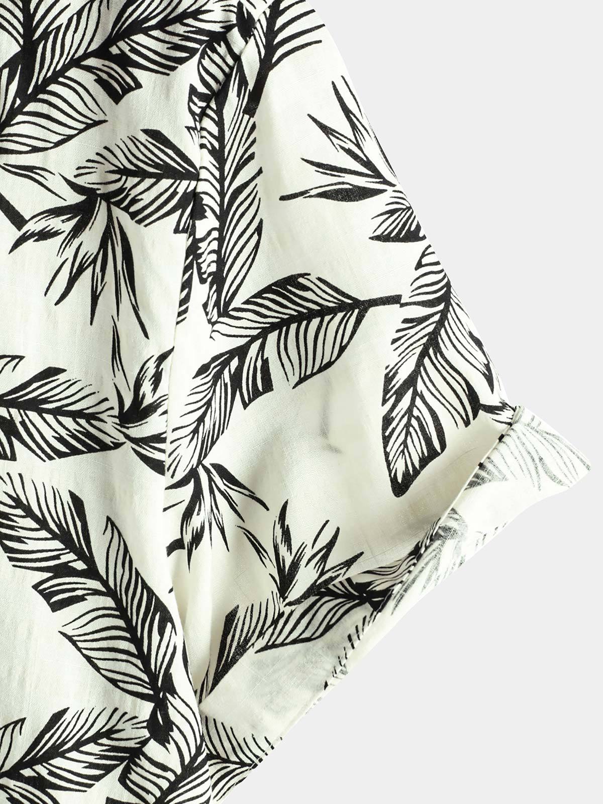 Men's Tropical Black Leaf Short Sleeve Summer Hawaiian Shirt