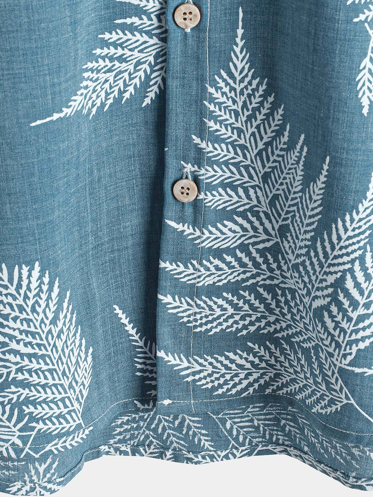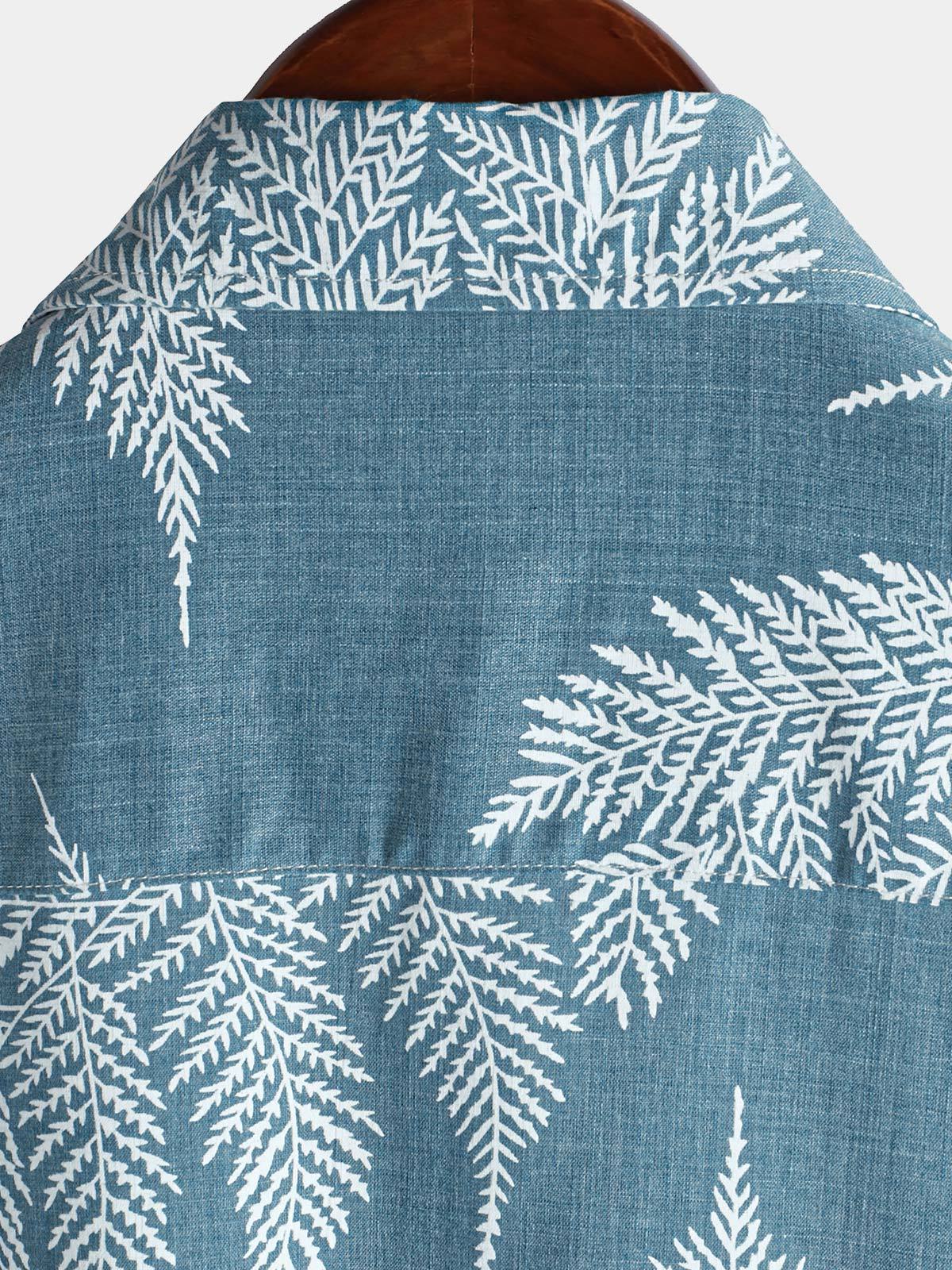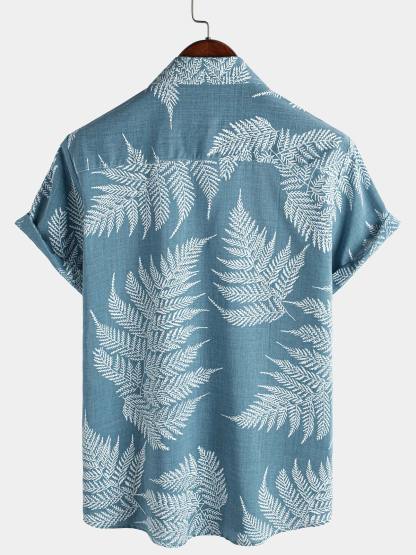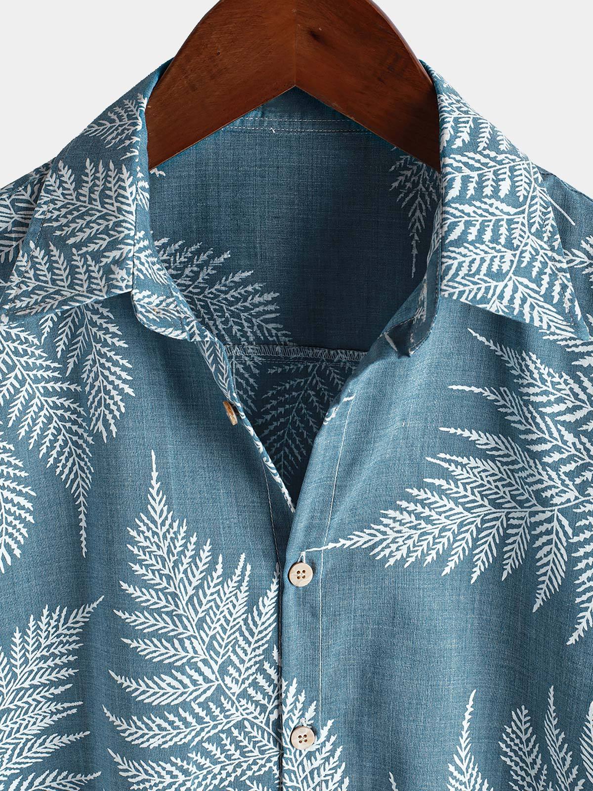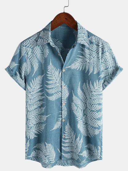 Men's Tropical Blue Button Up Short Sleeve Summer Shirt