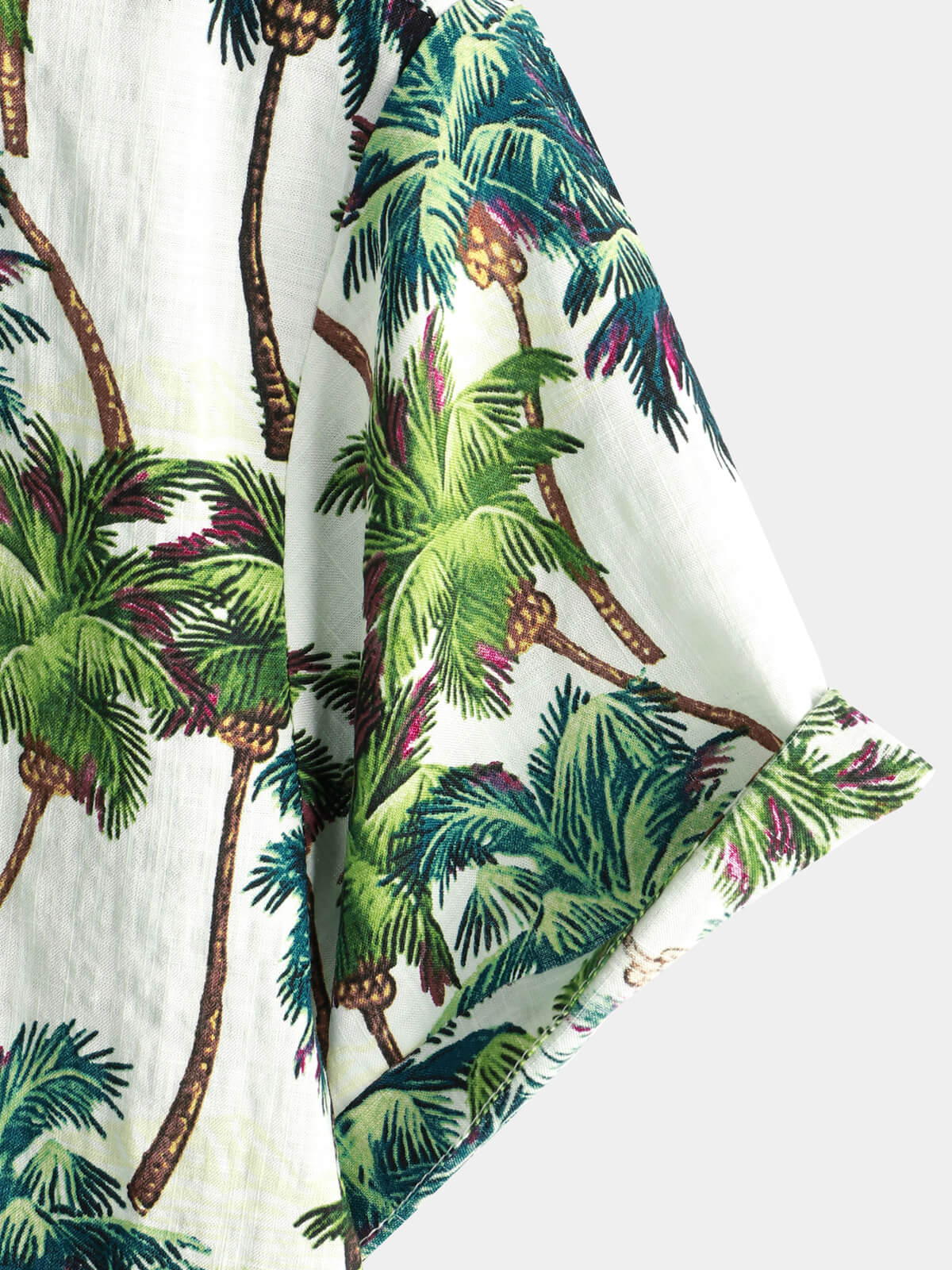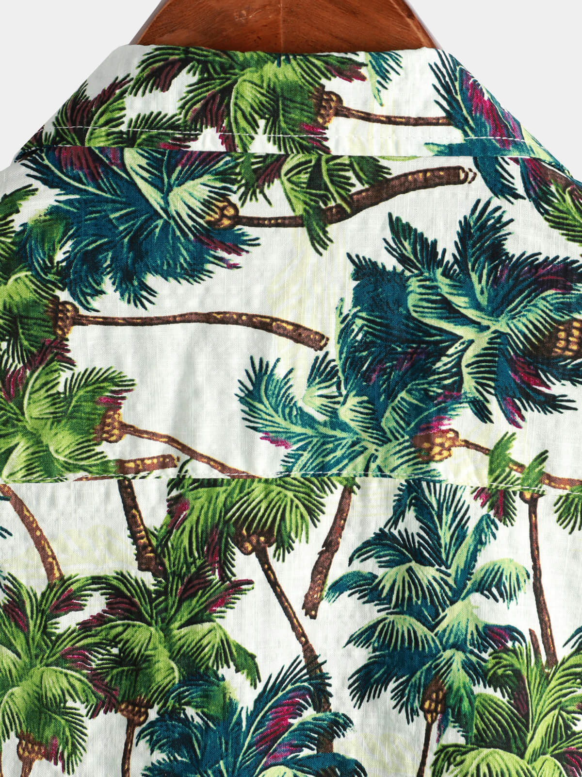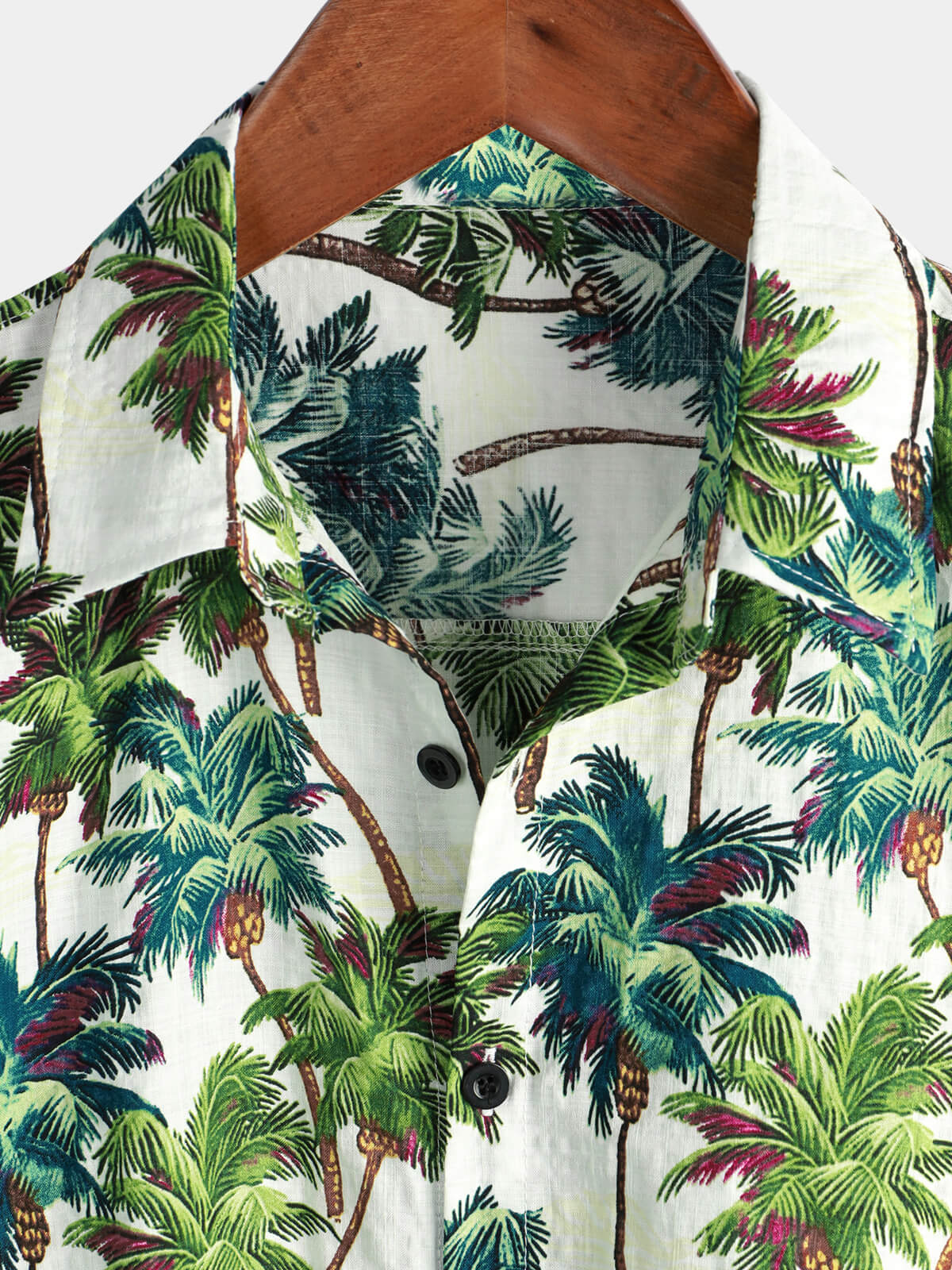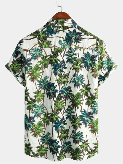 Men's Tropical Floral Print Summer Short Sleeve Palm Tree Vintage Hawaiian Shirt