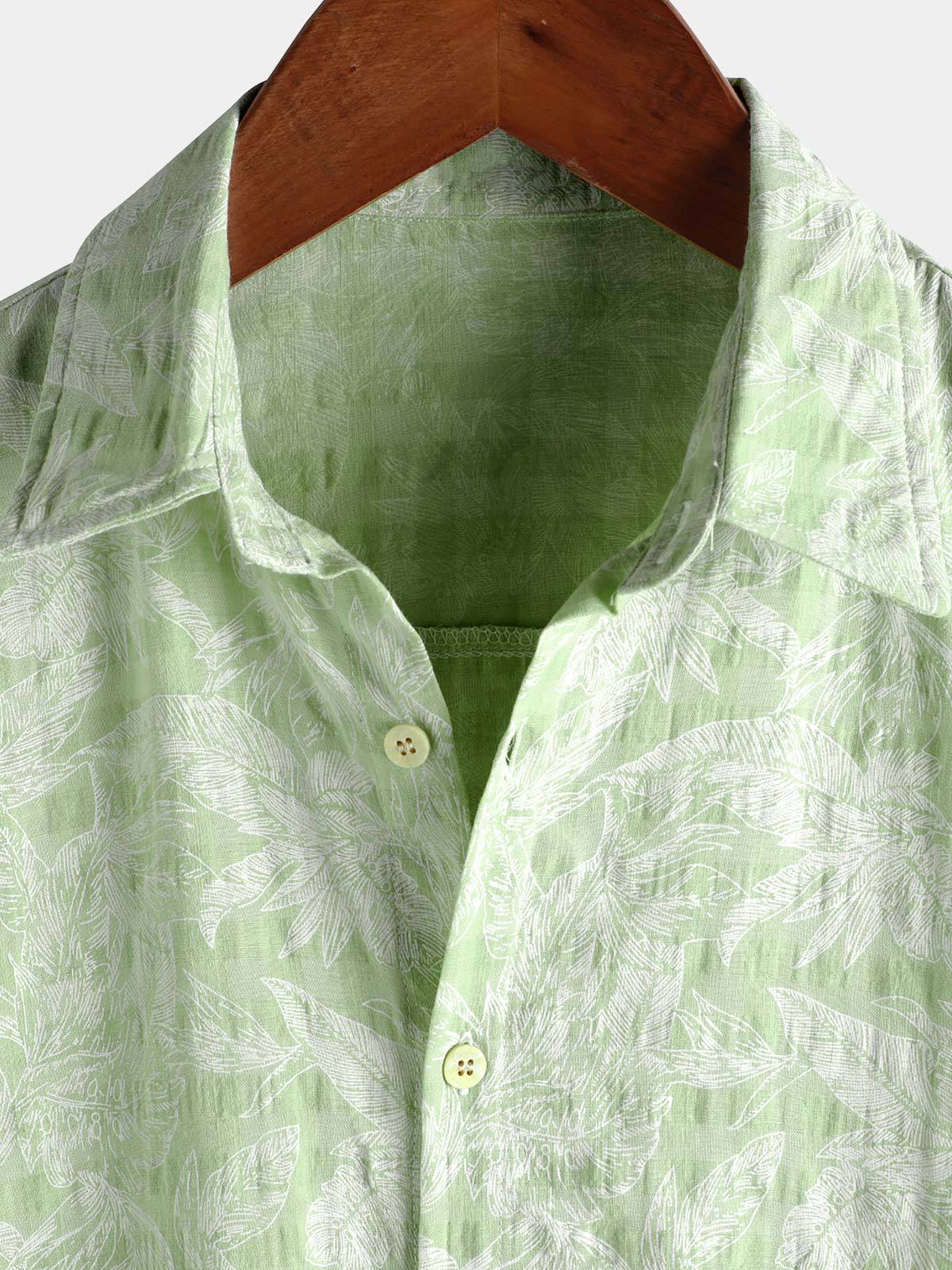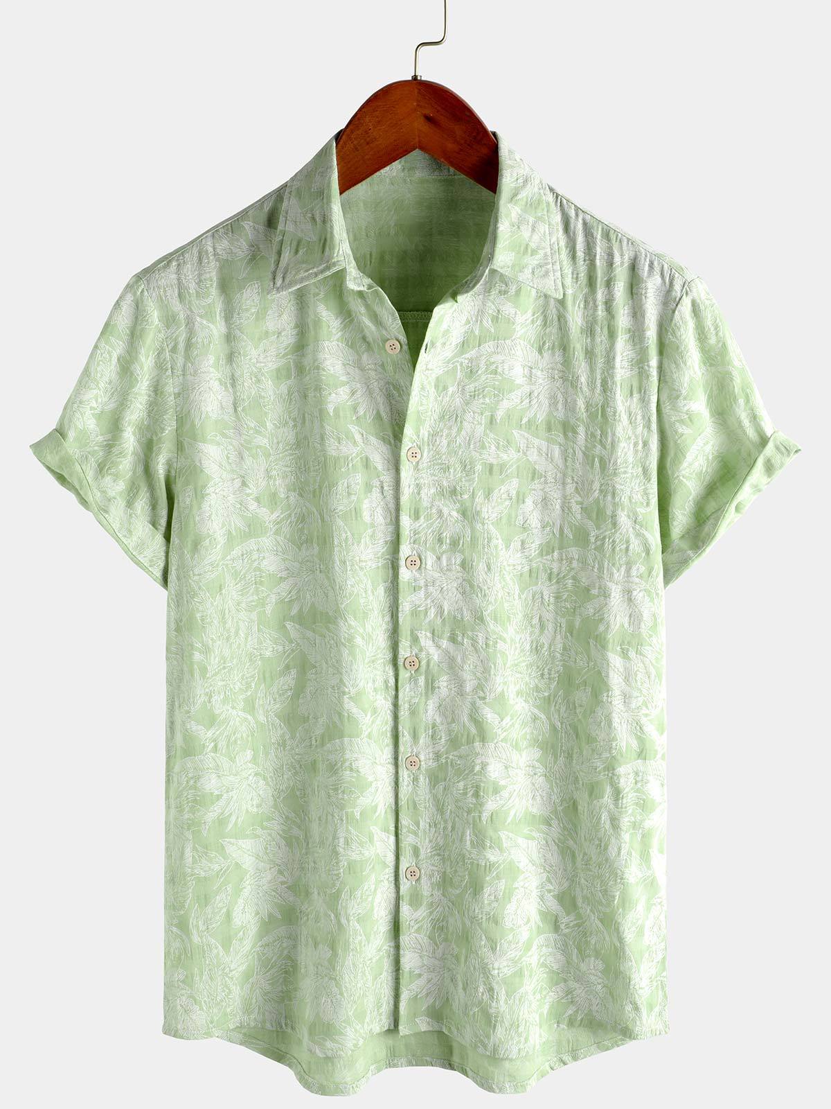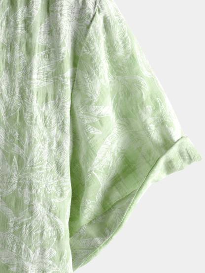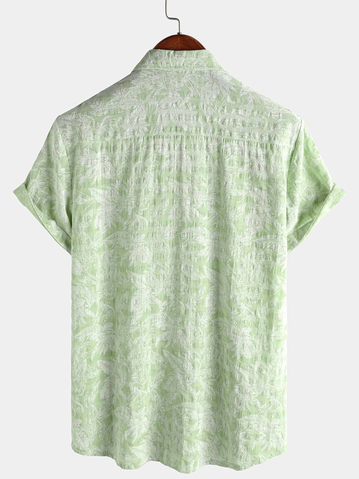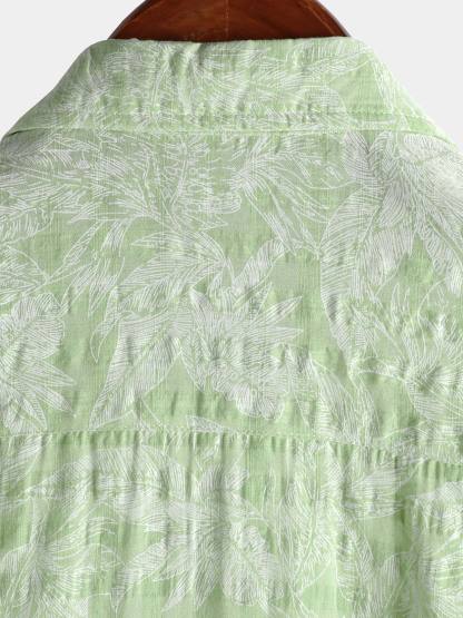Men's Tropical Green Leaf Short Sleeve Summer Hawaiian Shirt