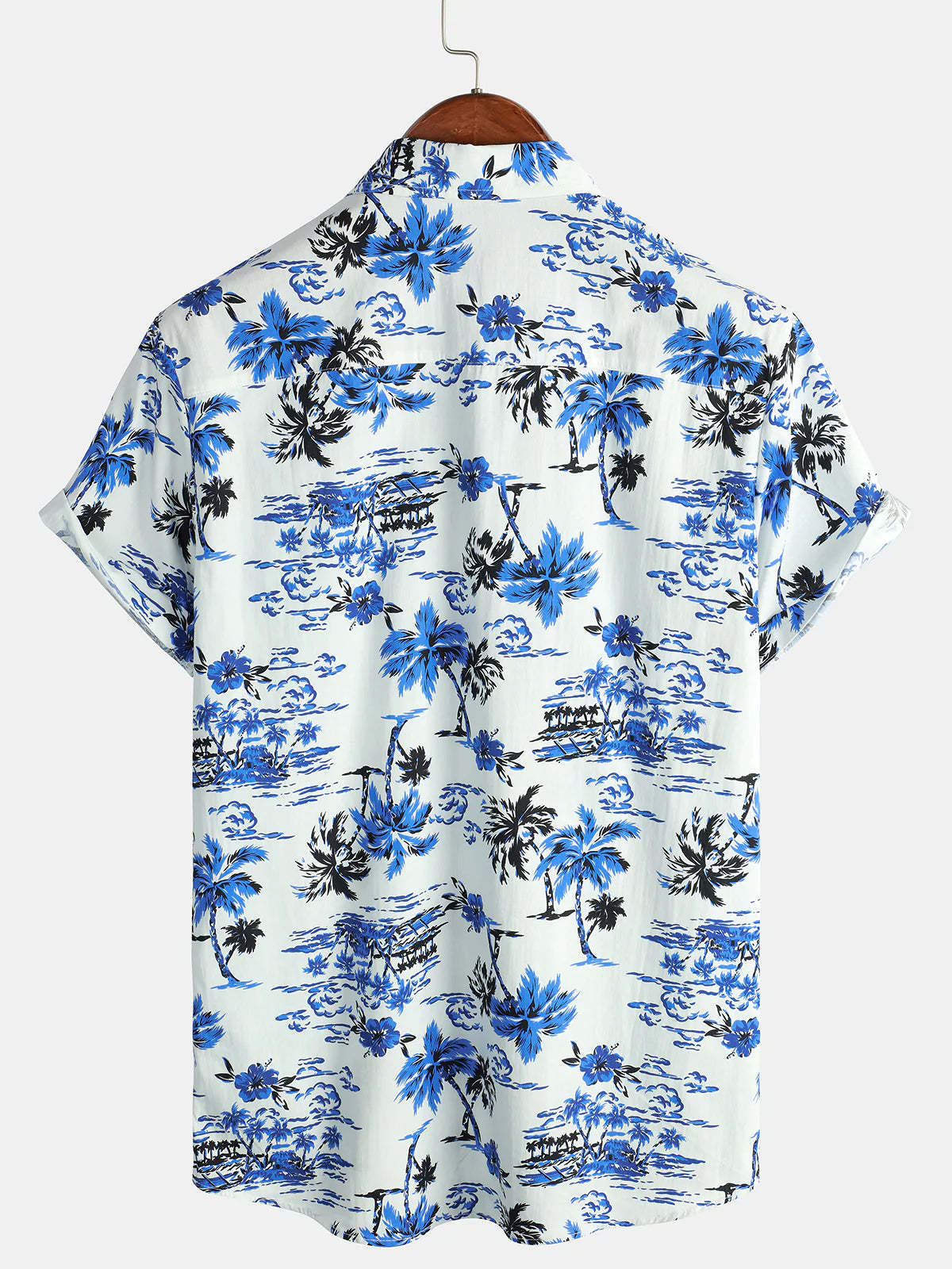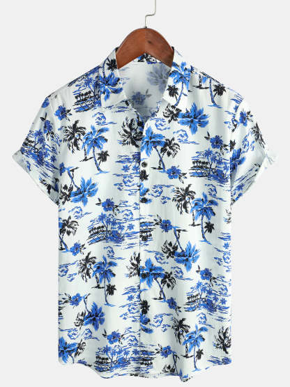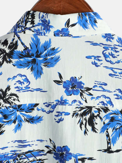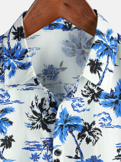 Men's Tropical Palm Tree Print Summer Vacation Cotton Aloha Short Sleeve Hawaiian Shirt