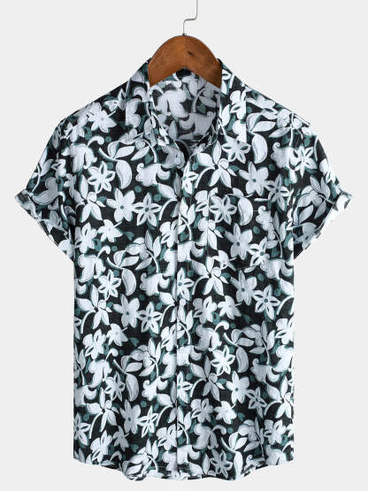 Men's Tropical Vintage Floral Short Sleeve Holiday Shirt