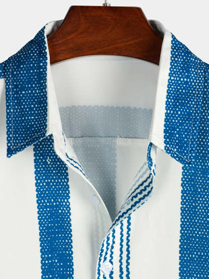 Men's Vintage Blue Vertical Striped Casual Short Sleeve Shirt