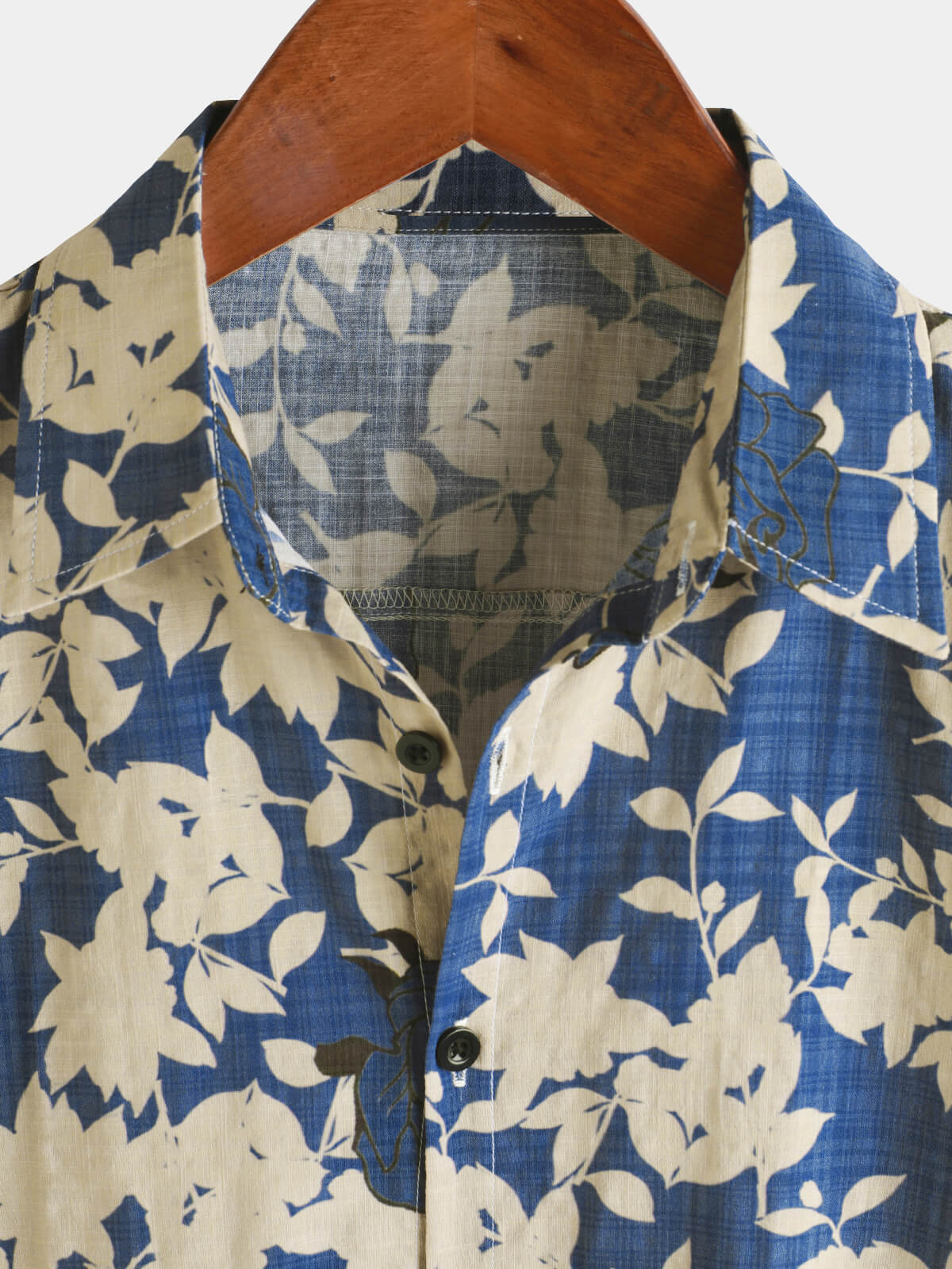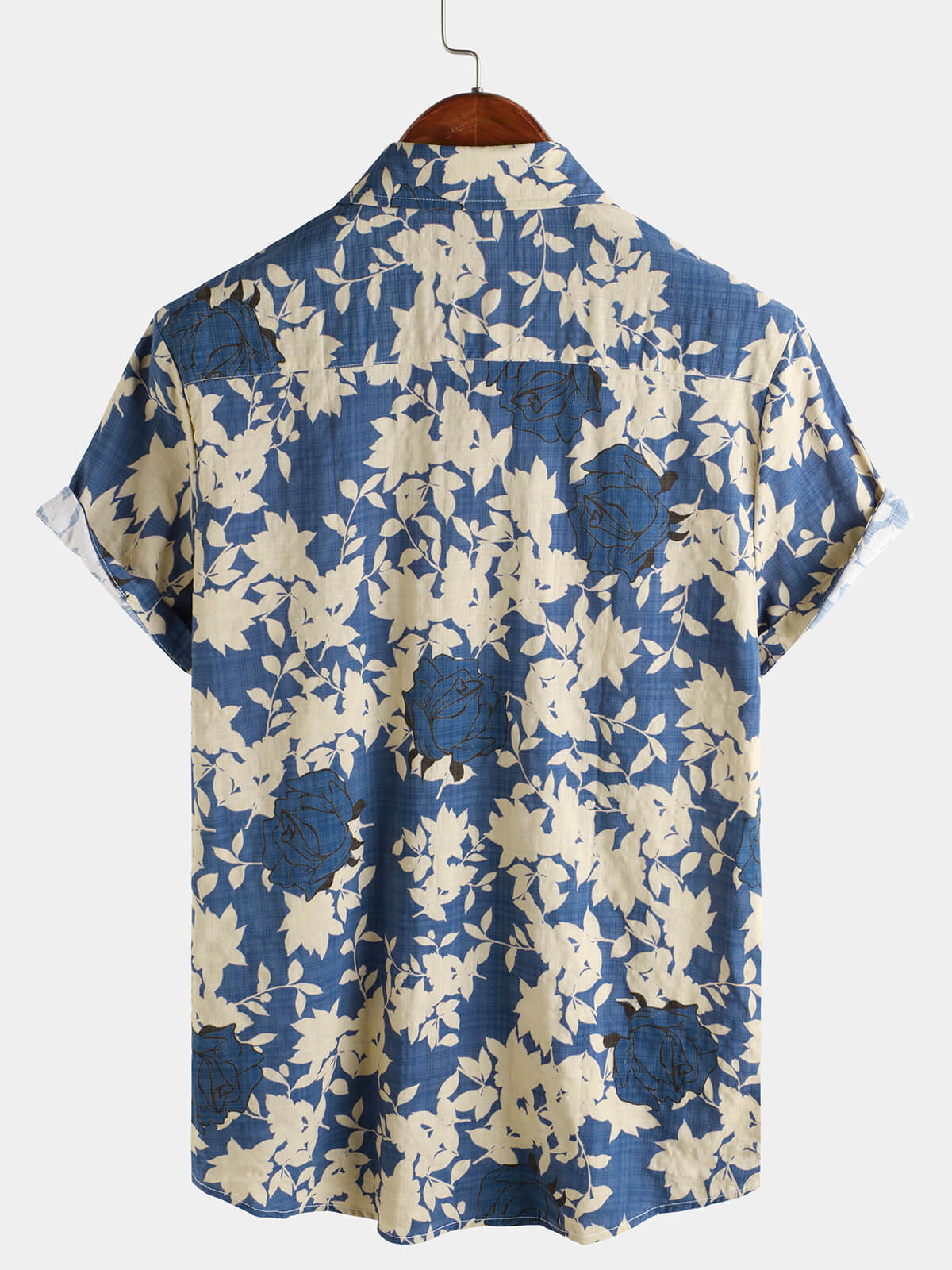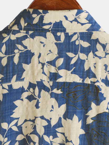 Men's Vintage Floral Blue Casual Beach Short Sleeve Shirt