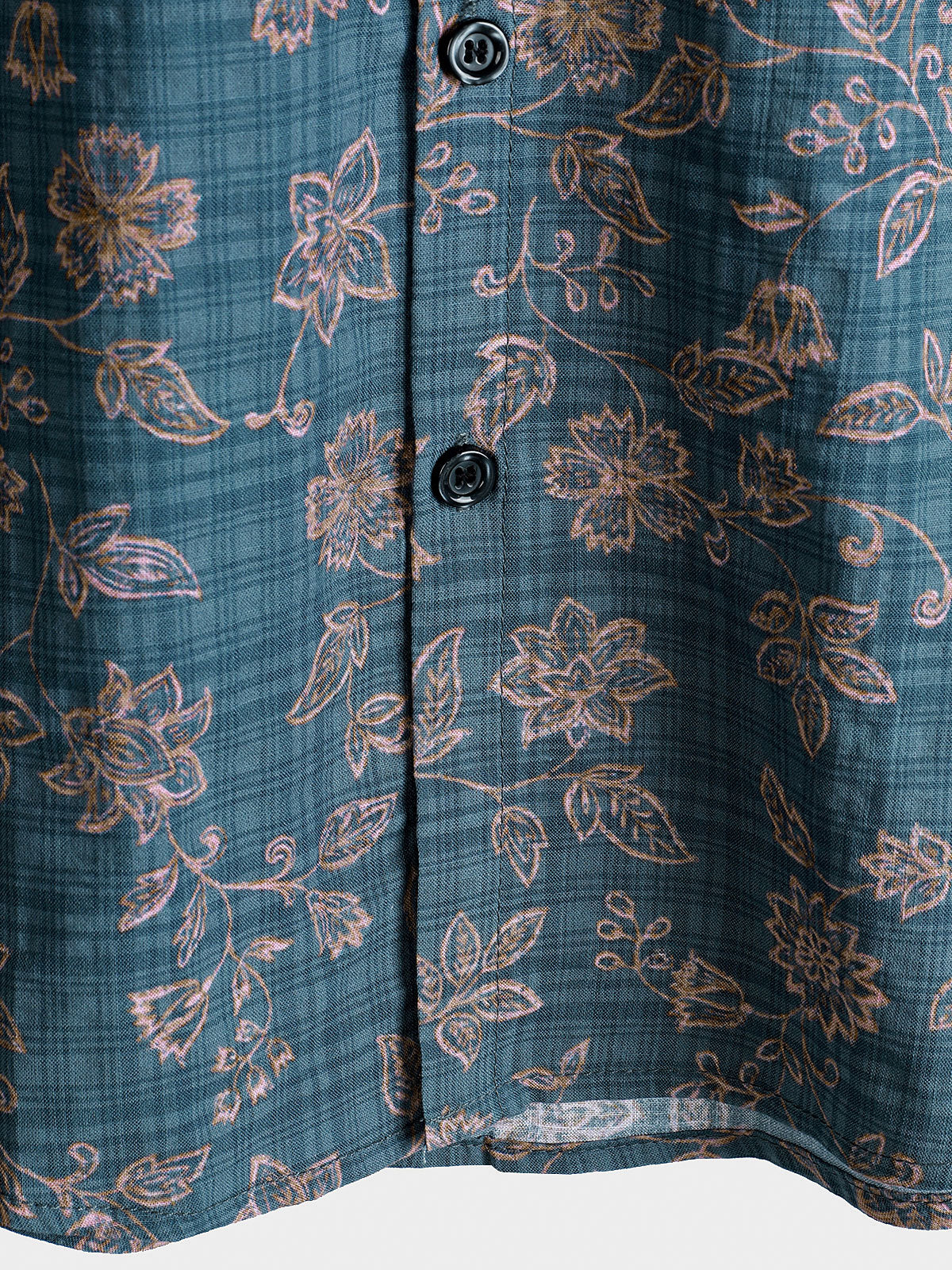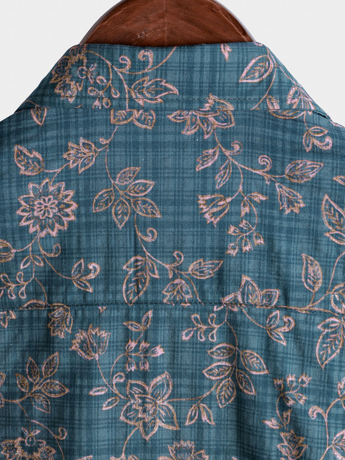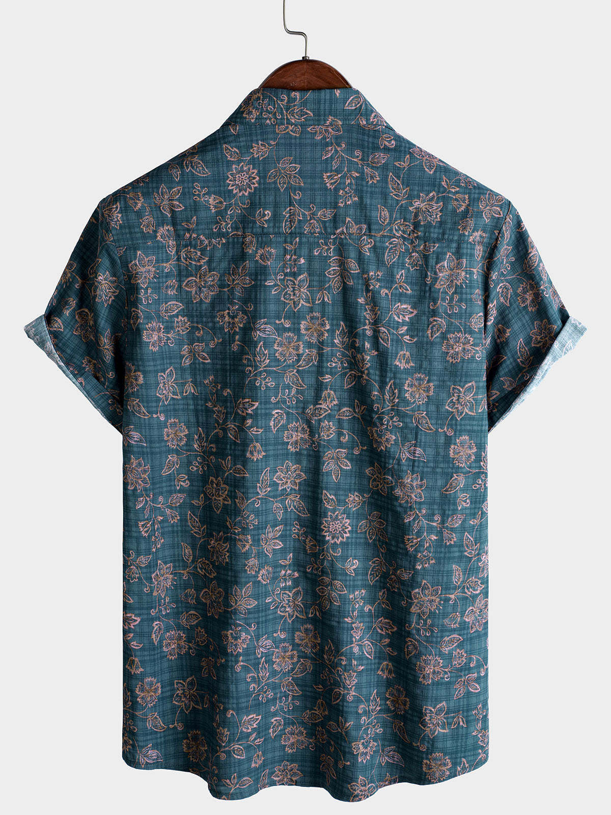 Men's Vintage Floral Breathable Cotton Short Sleeve Shirt
