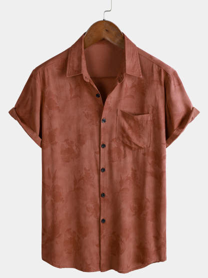Men's Vintage Floral Brown Breathable Vacation Short Sleeve Shirt