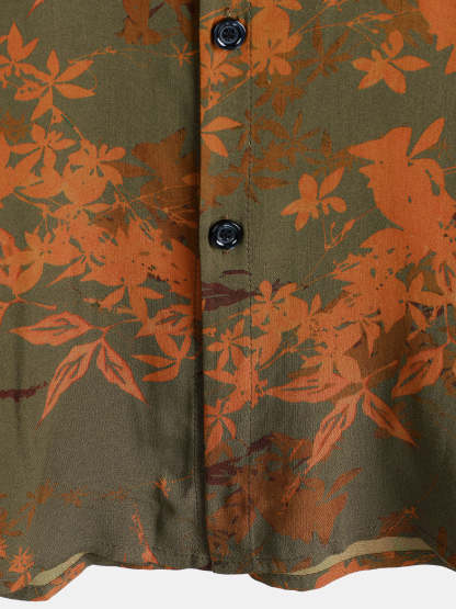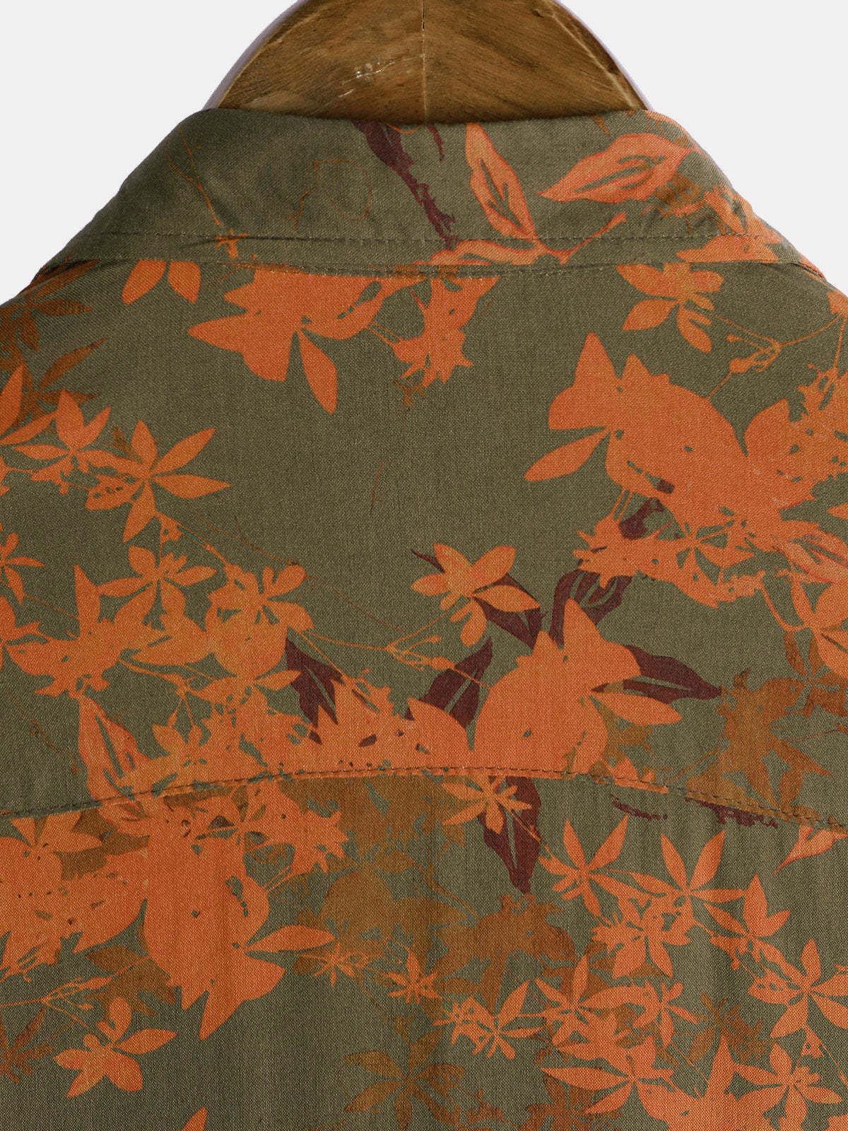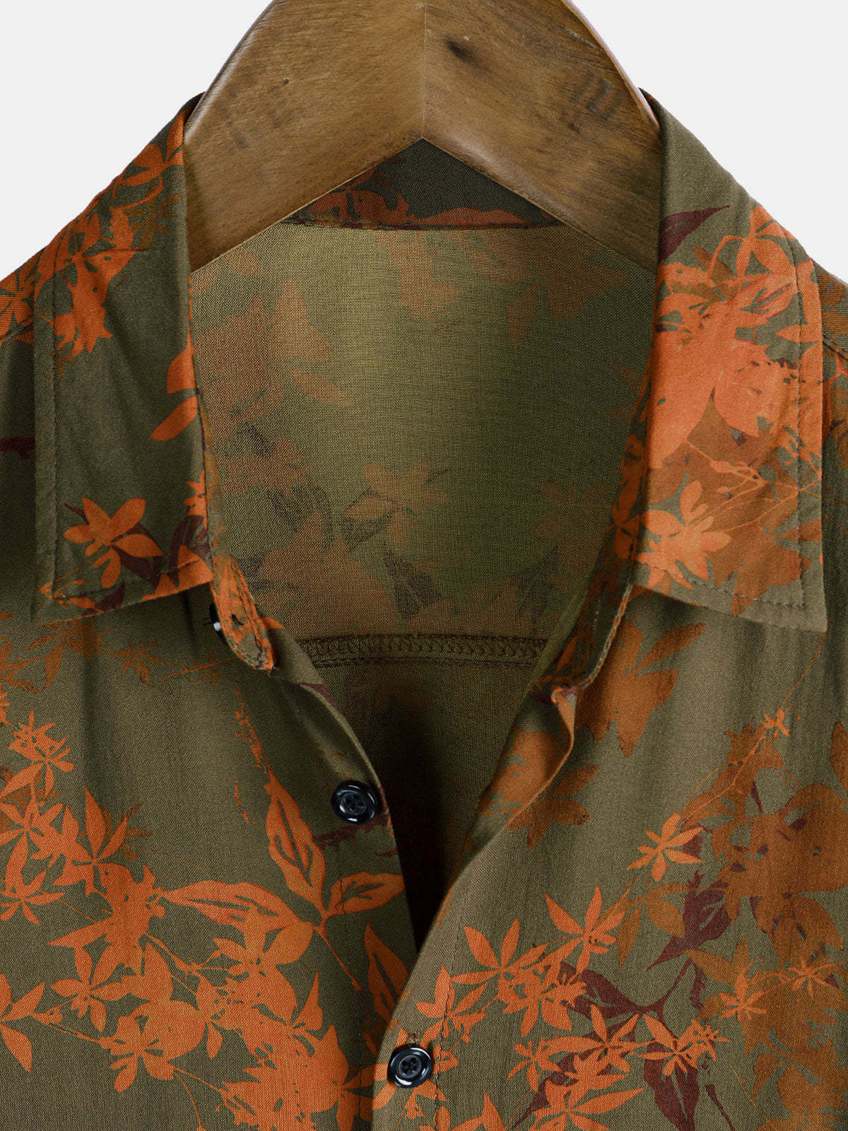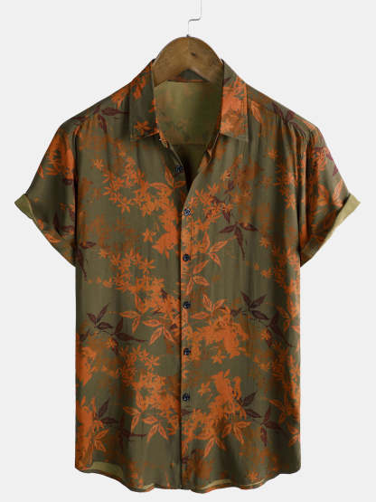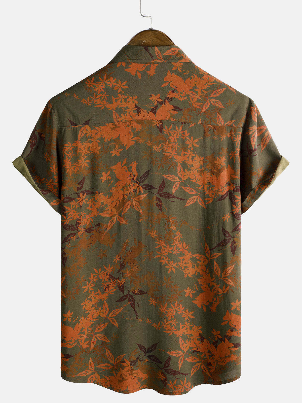 Men's Vintage Floral Holiday Short Sleeve Button Summer Beach Shirt