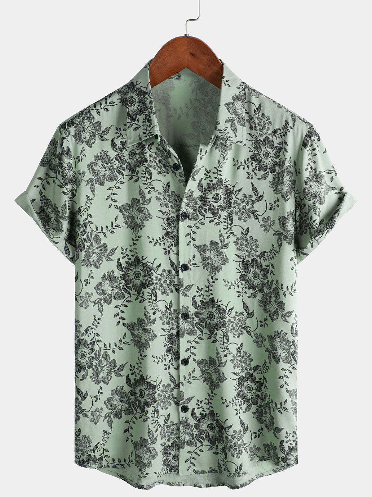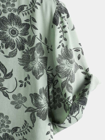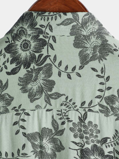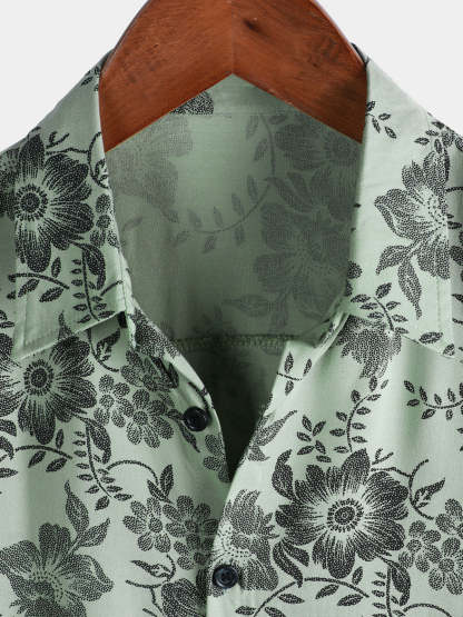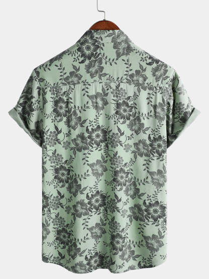 Men's Vintage Floral Print Holiday Hawaiian Short Sleeve Shirt