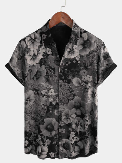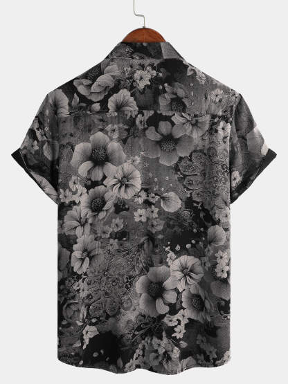 Men's Vintage Floral Summer Holiday Hawaiian Breathable Button Up Short Sleeve Shirt