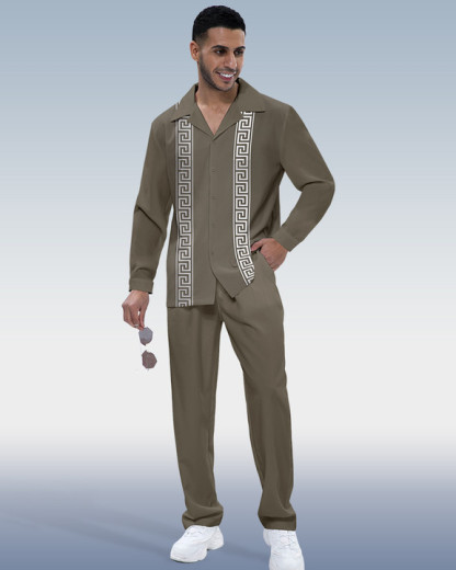 Men's Vintage Print Long Sleeve Walking Suit 25
