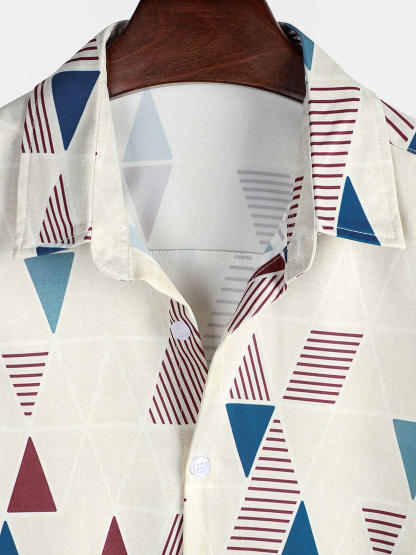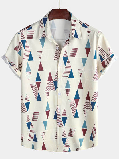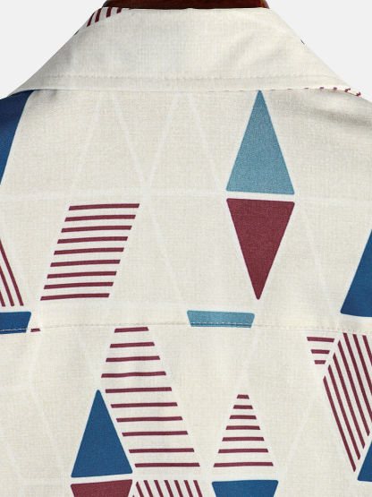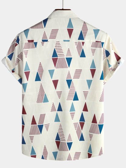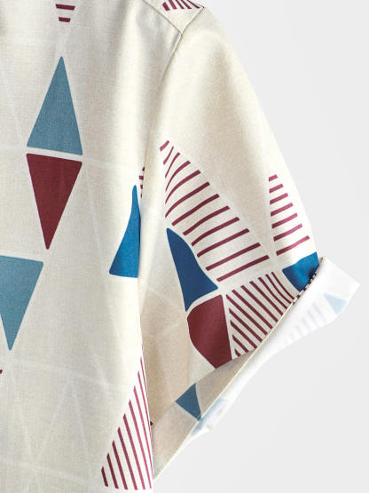Men's Vintage Short Sleeve Art Geometric Print Casual Button Up Shirt