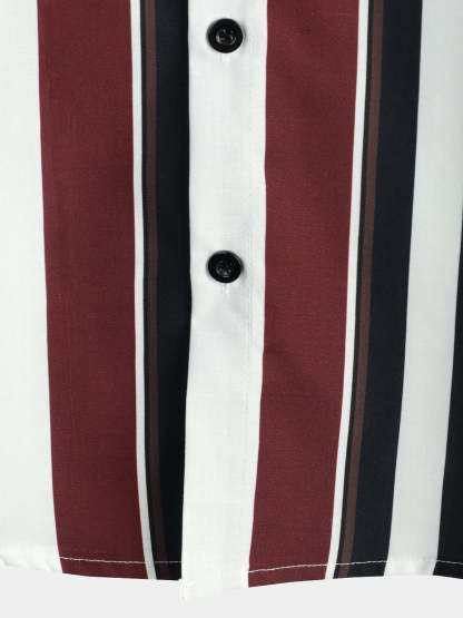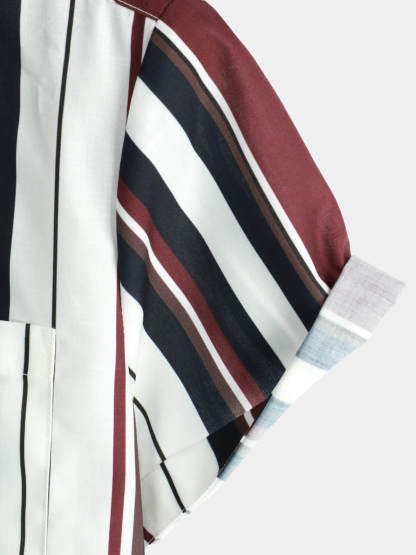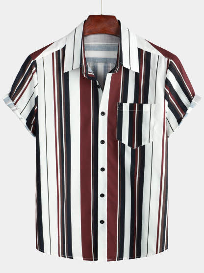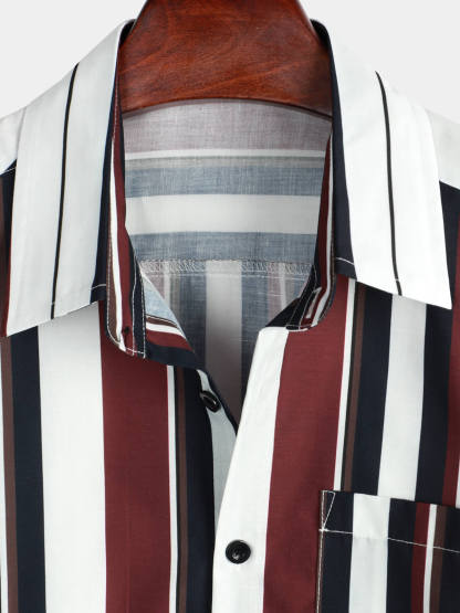 Men's Vintage Striped Button Up Short Summer Sleeve Casual Shirt