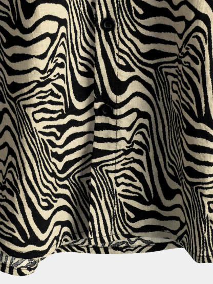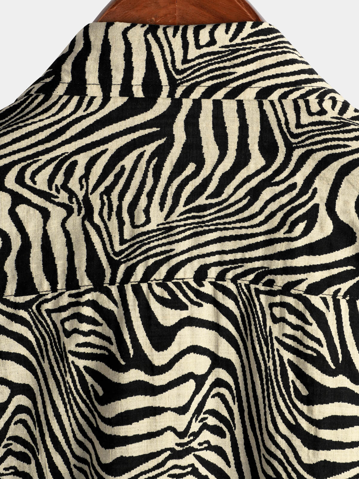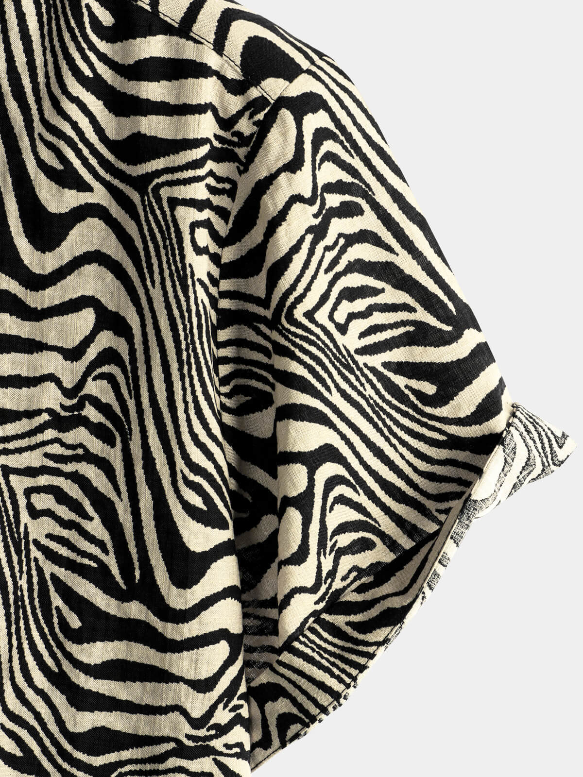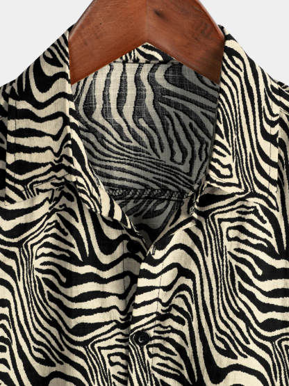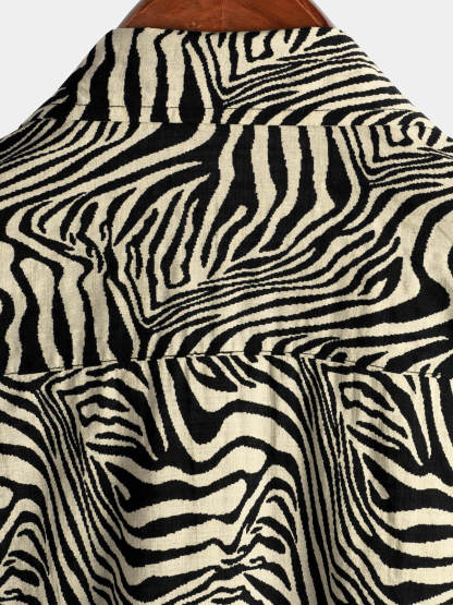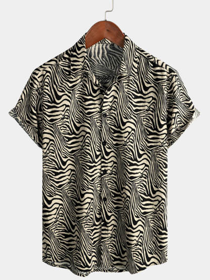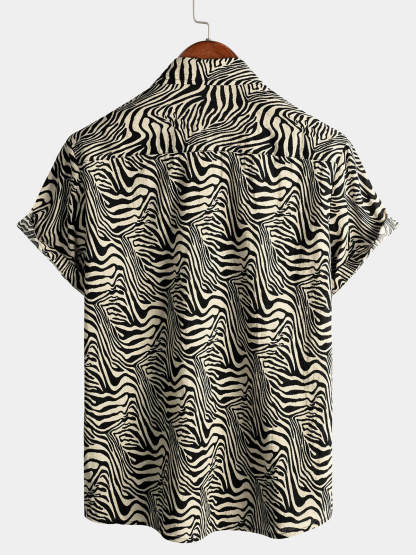 Men's Vintage Summer Tiger Print Cool Vacation Beach Short Sleeve Button Up Shirt