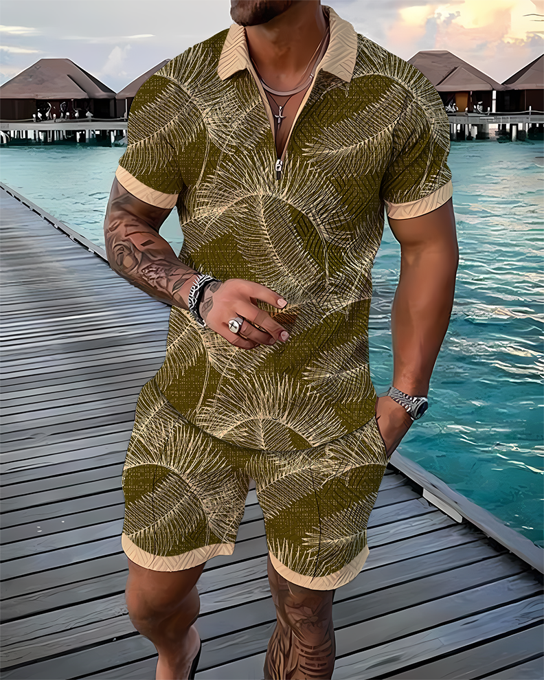 Palm Tree Leaves Polo Shirt And Shorts Co-Ord – Mentalmens