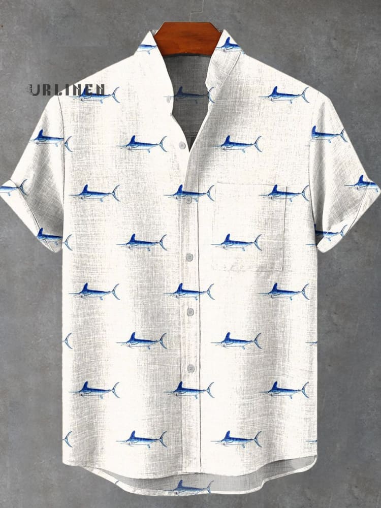 Simple Small Fish Print Vintage Print Casual 100% Cotton Shirt