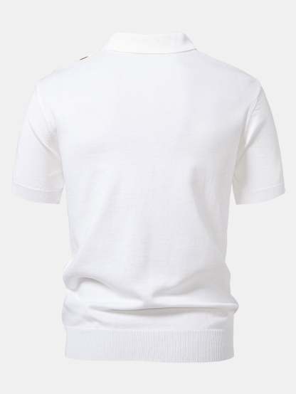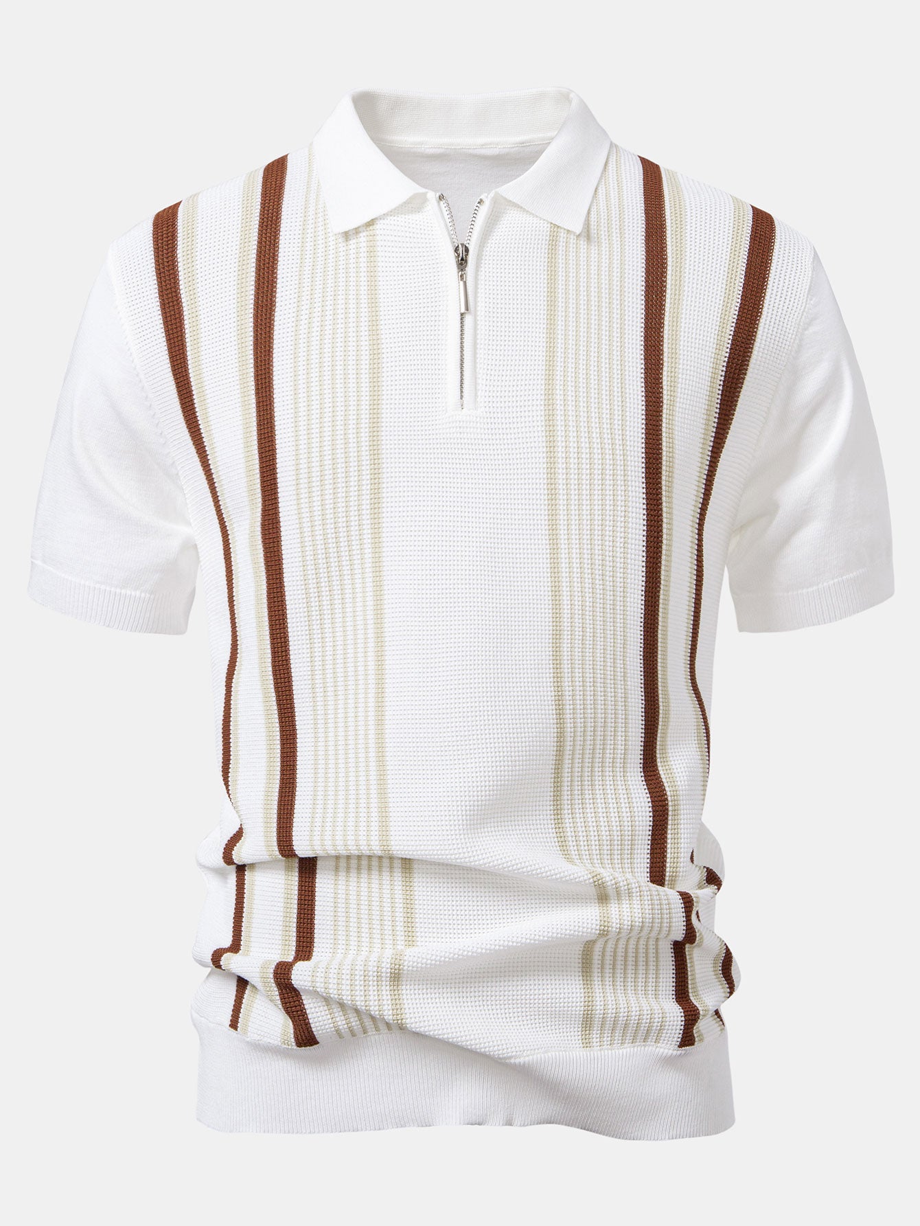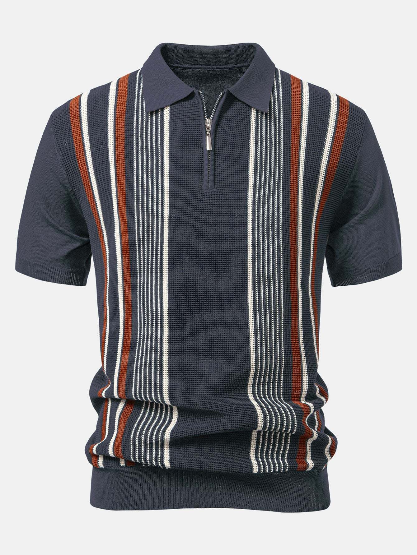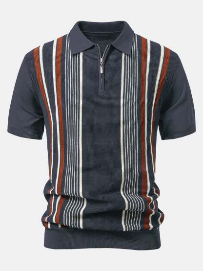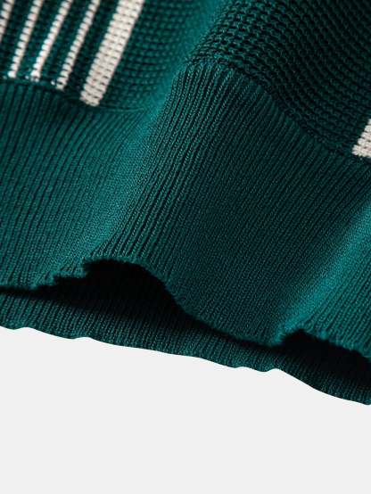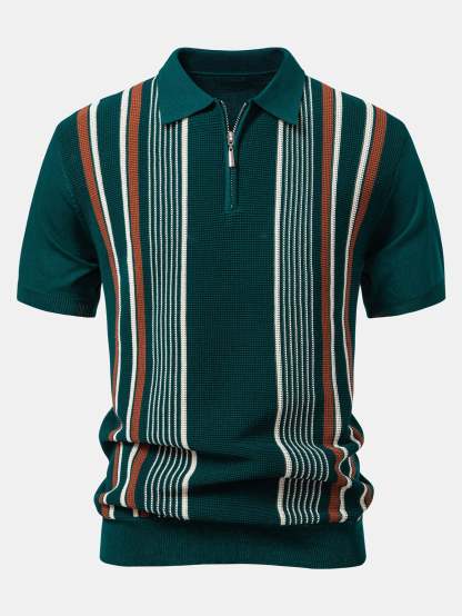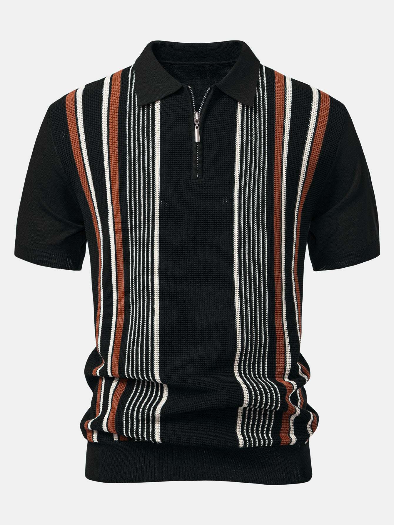 The top features a sporty zip-up collar and chic contrast stripes for a modern twist on the classic polo look. Paired with high-comfort ribbed knit pants that offer a relaxed, straight-leg fit, this set blends casual ease with contemporary flair. Perfect for lounging, weekend outings, or casual gatherings.