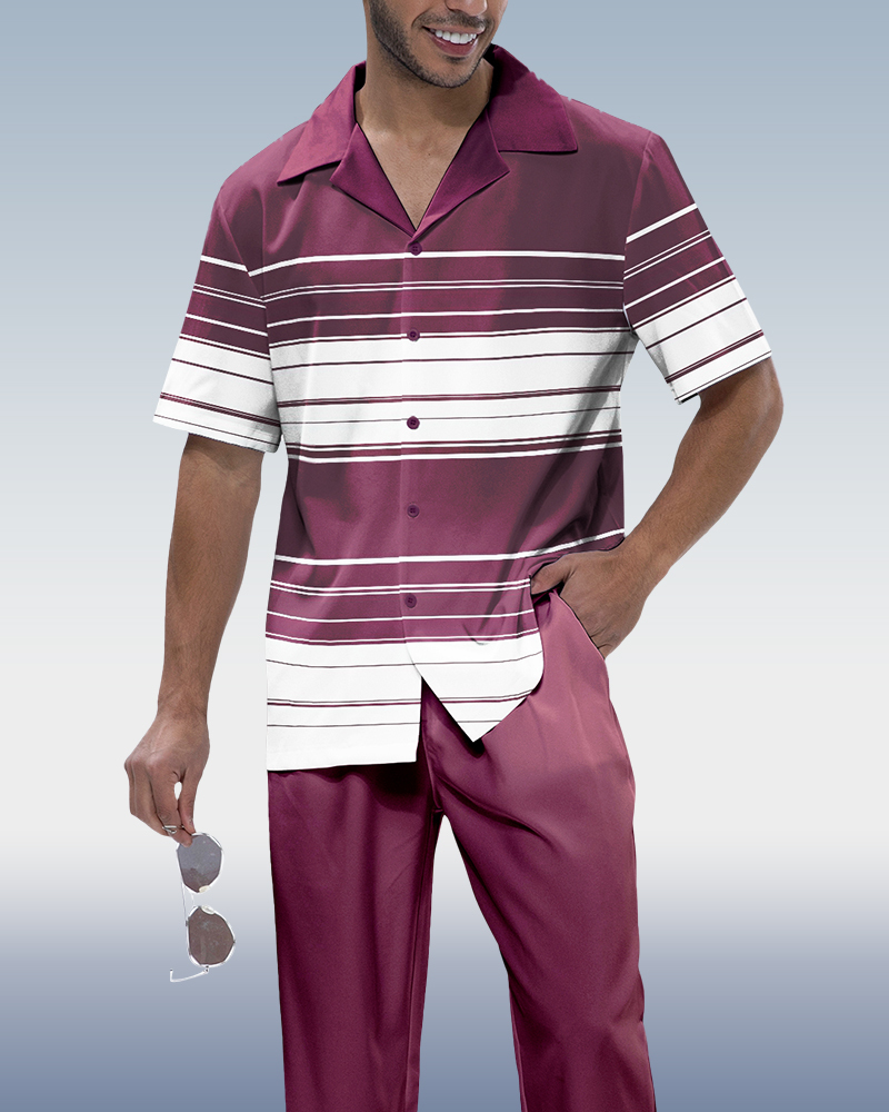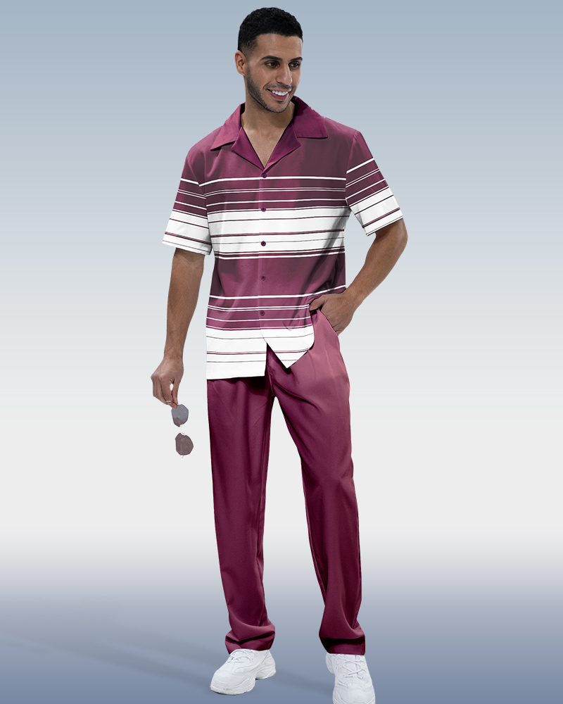 Stripe Print Short Sleeve Walking Suit
