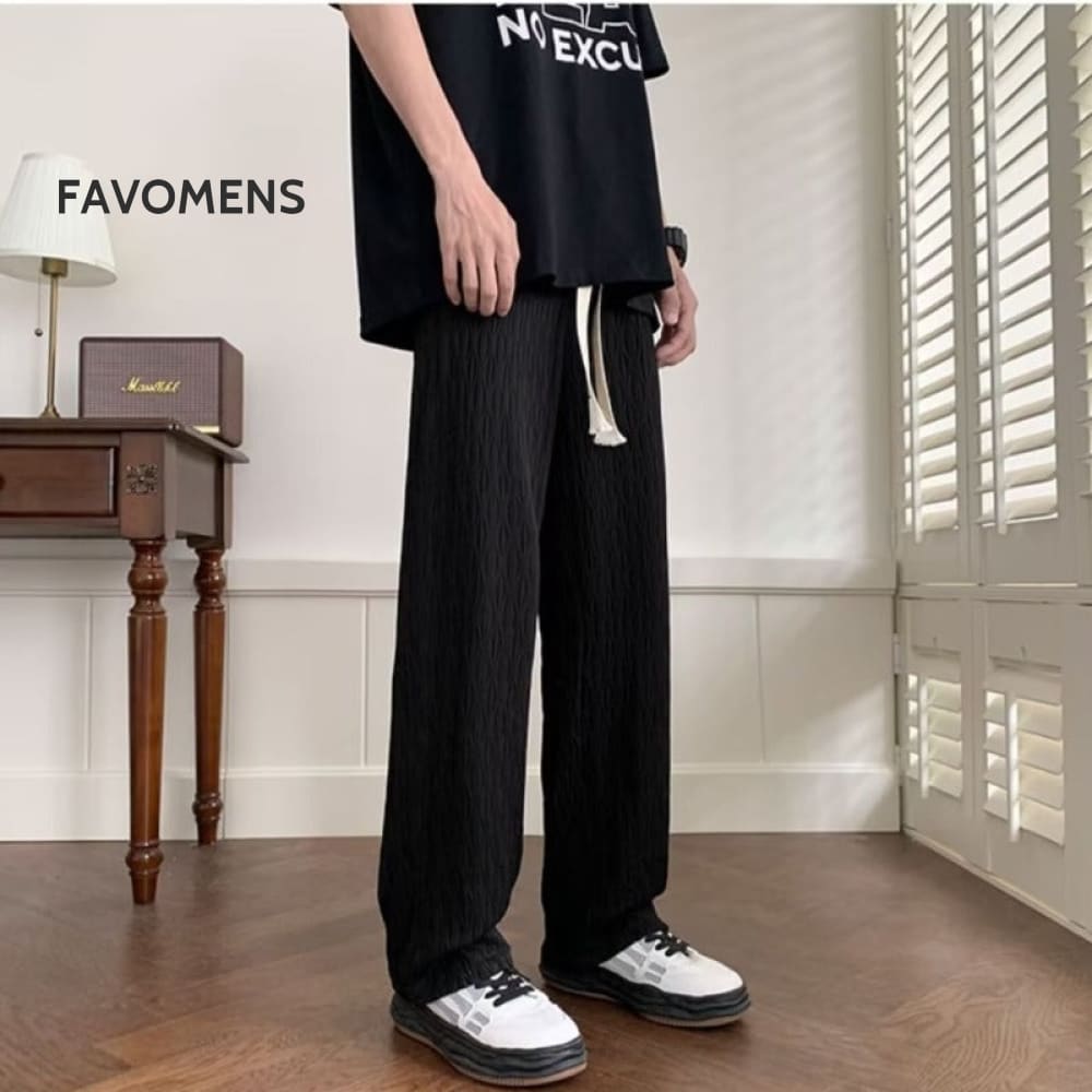 Men's high-quality water ripple white pants casual wide-leg pants loose and versatile