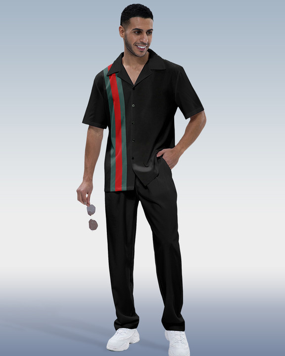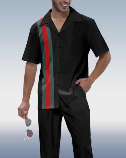 Men's Colorblock Print Short Sleeve Shirt Walking Set 246