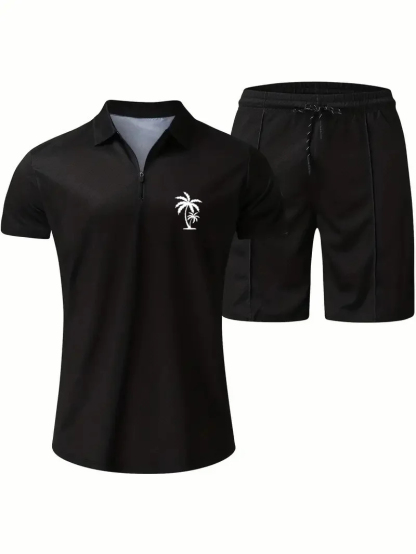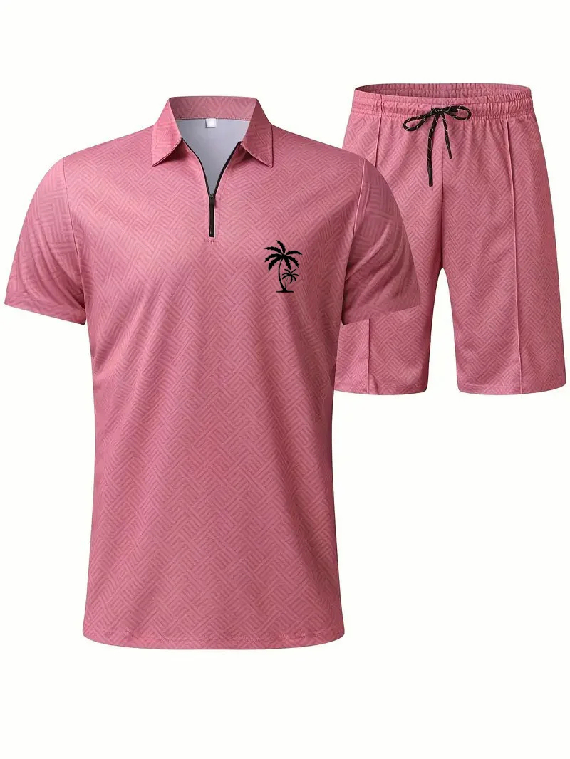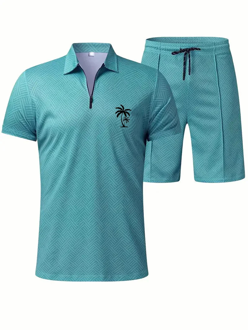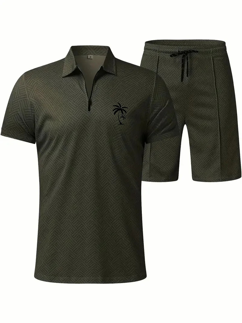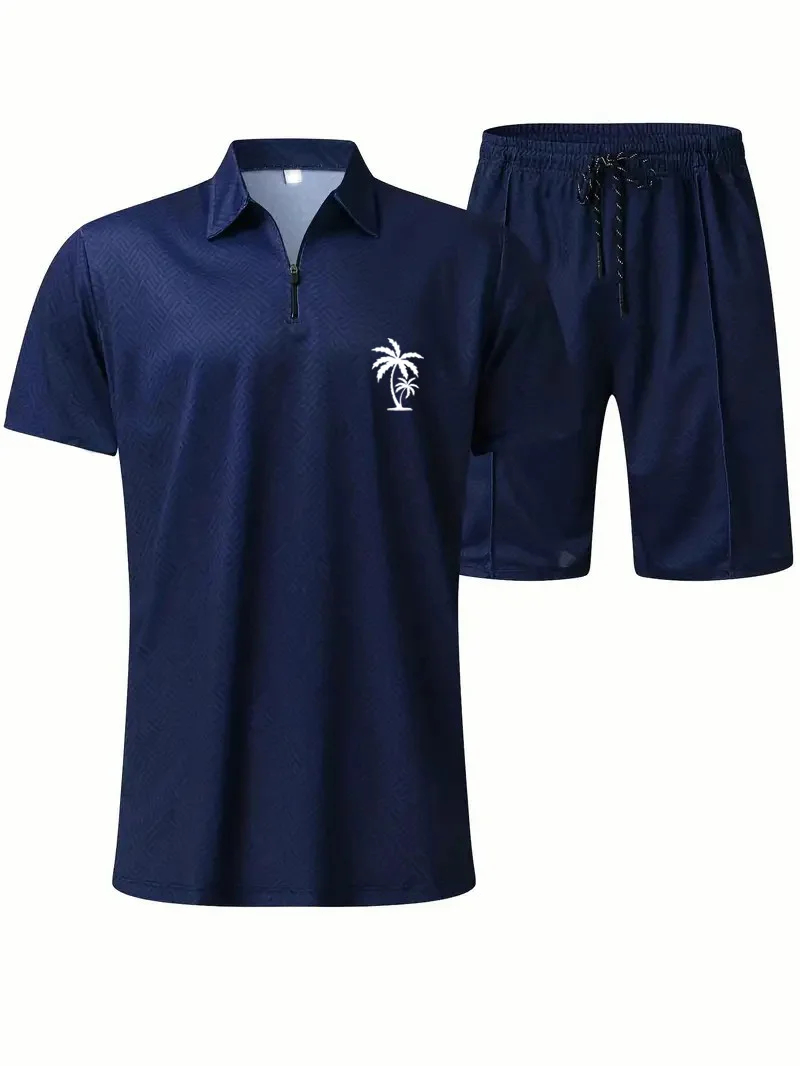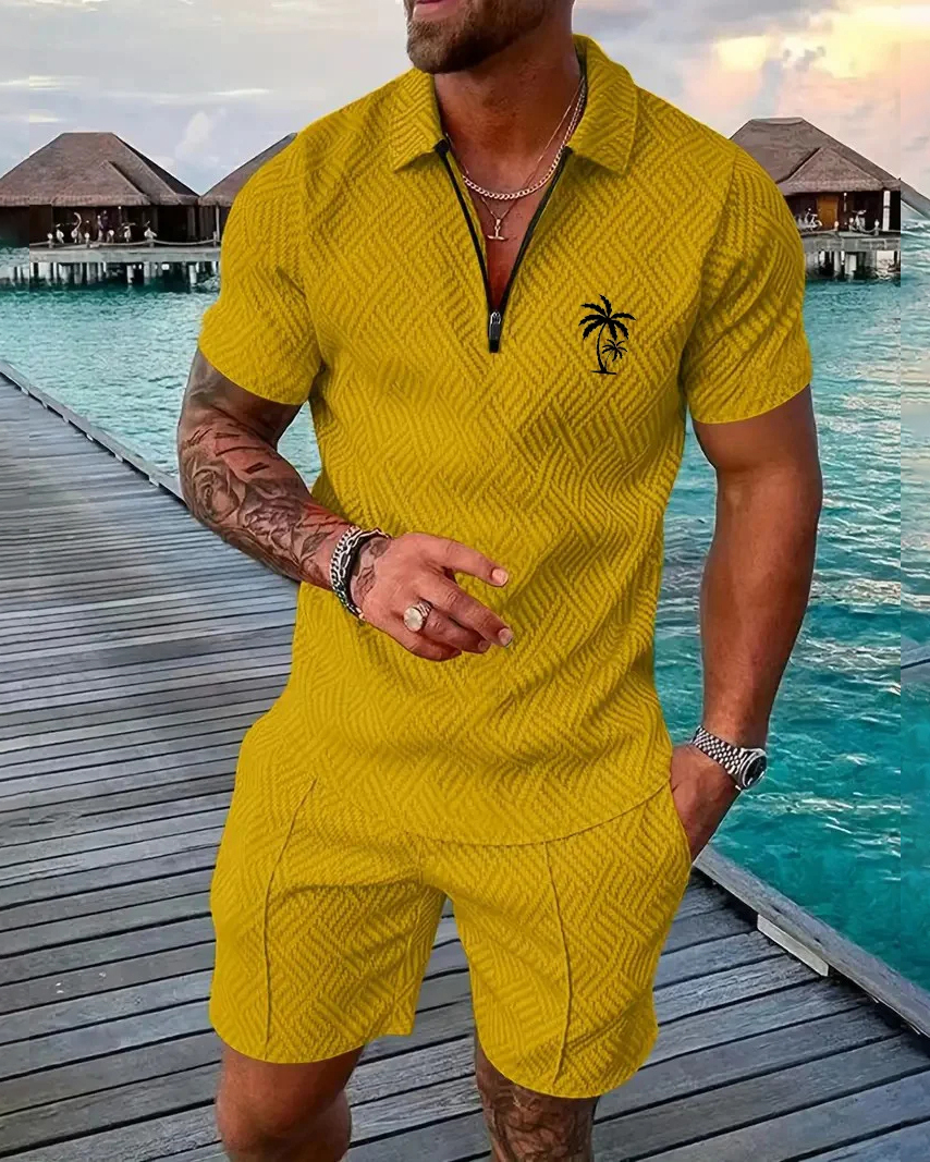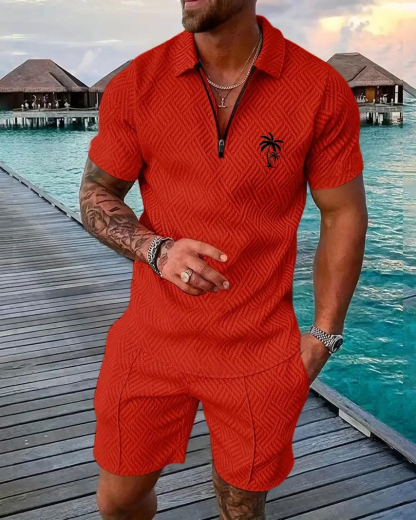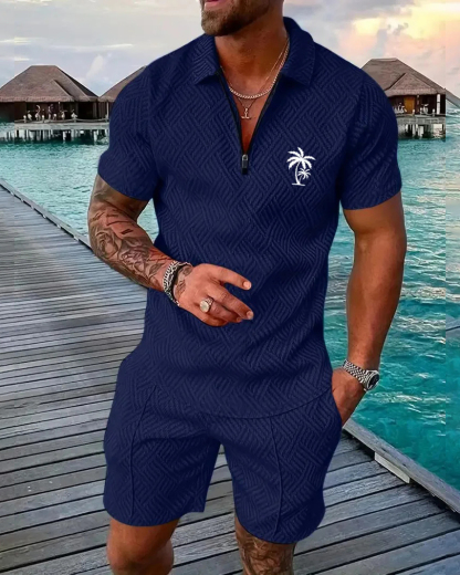 Men's Daily Casual Collar Zipper Polo Shirt Set 214