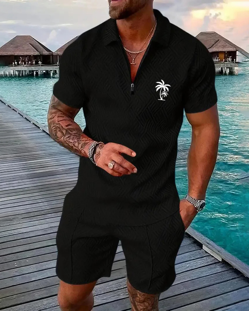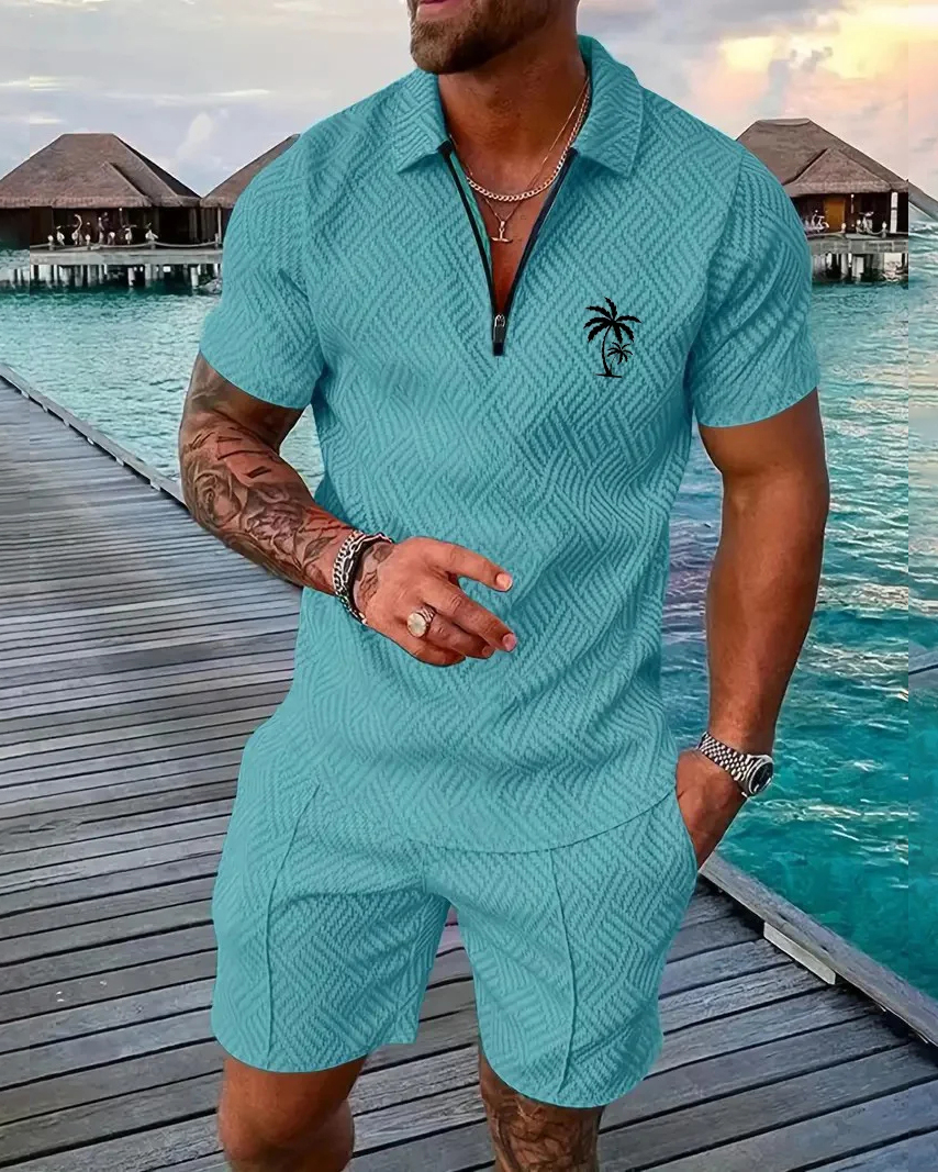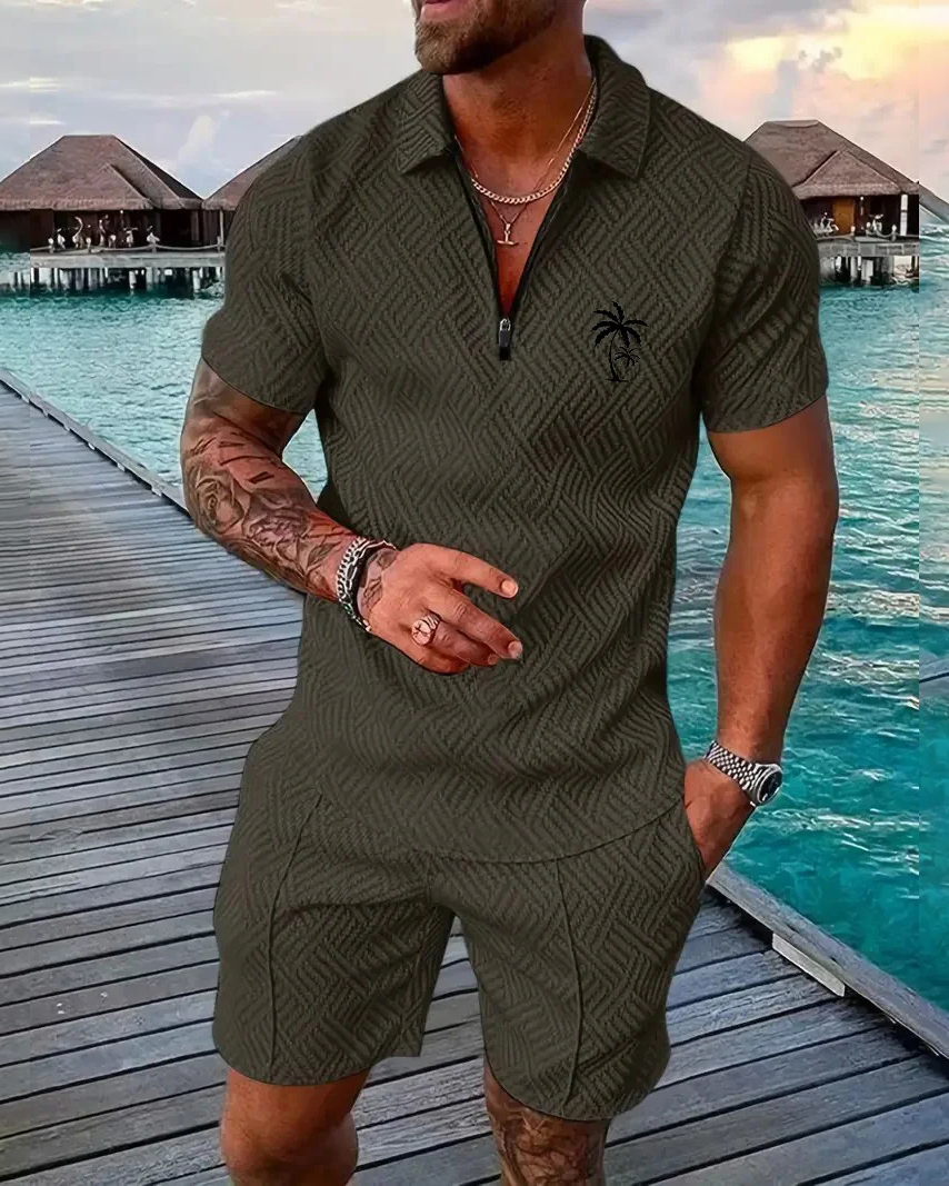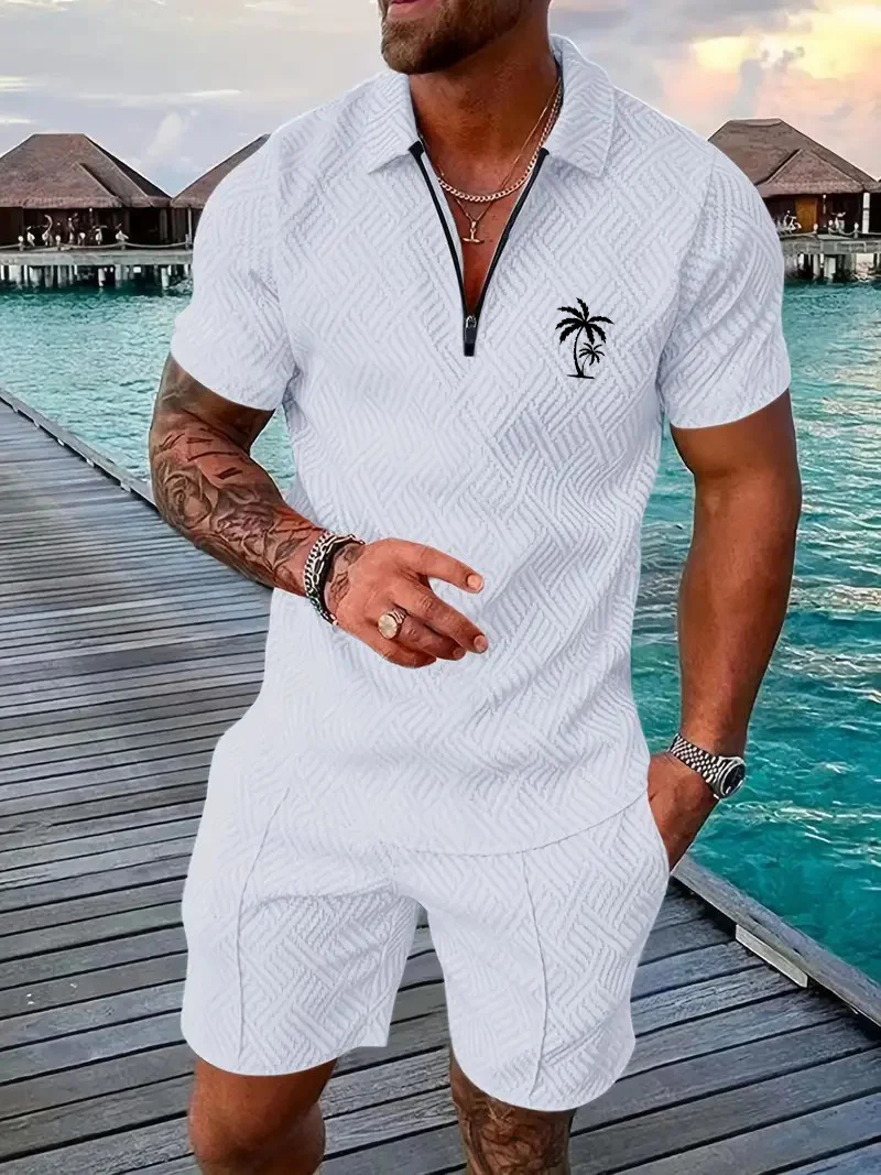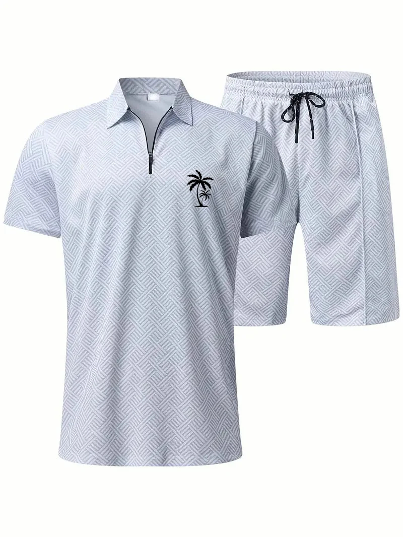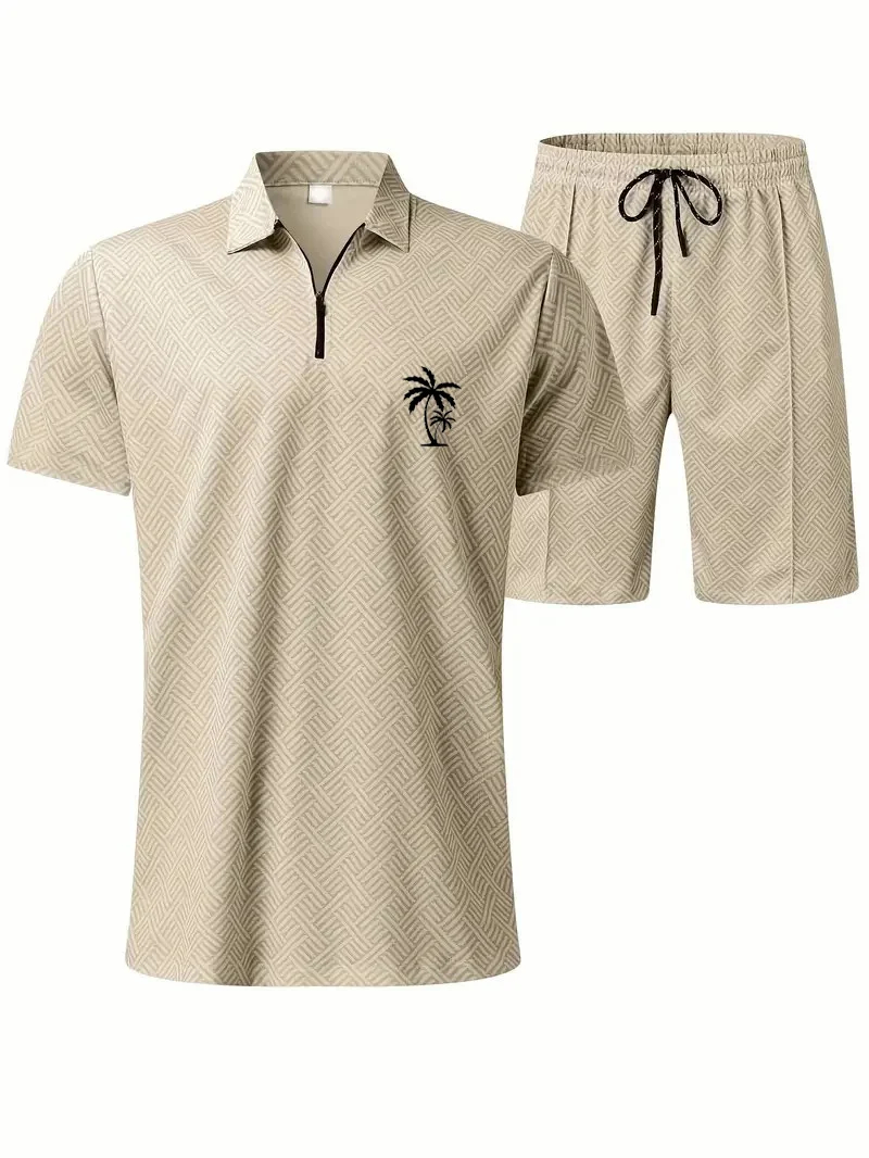 Men's Daily Casual Collar Zipper Polo Shirt Set 214