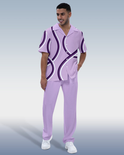 Men's Fashion Print Short Sleeve Shirt Walking Set 3 Colors 287