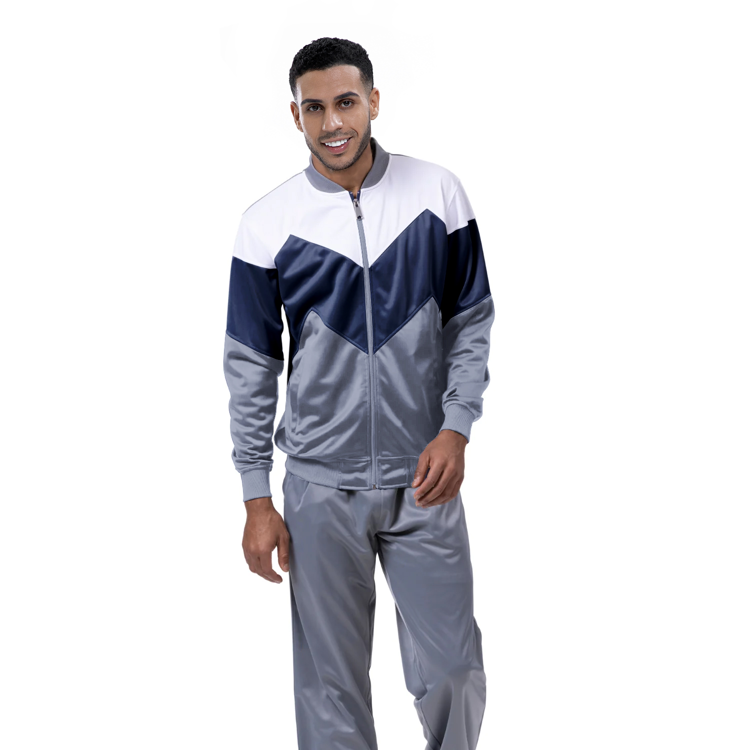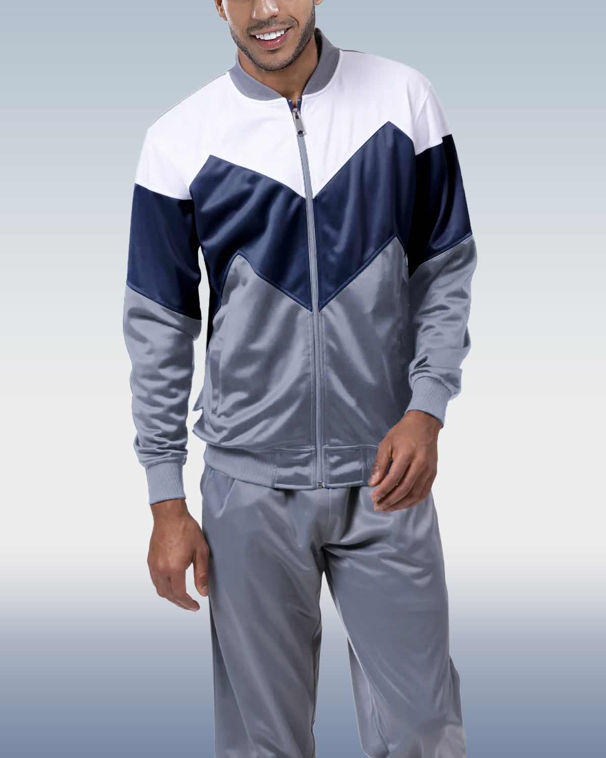 Men's Casual Navy Blue Color Matching Striped Printed Short Sleeved Polo Shirt & Trousers Two-Piece Set