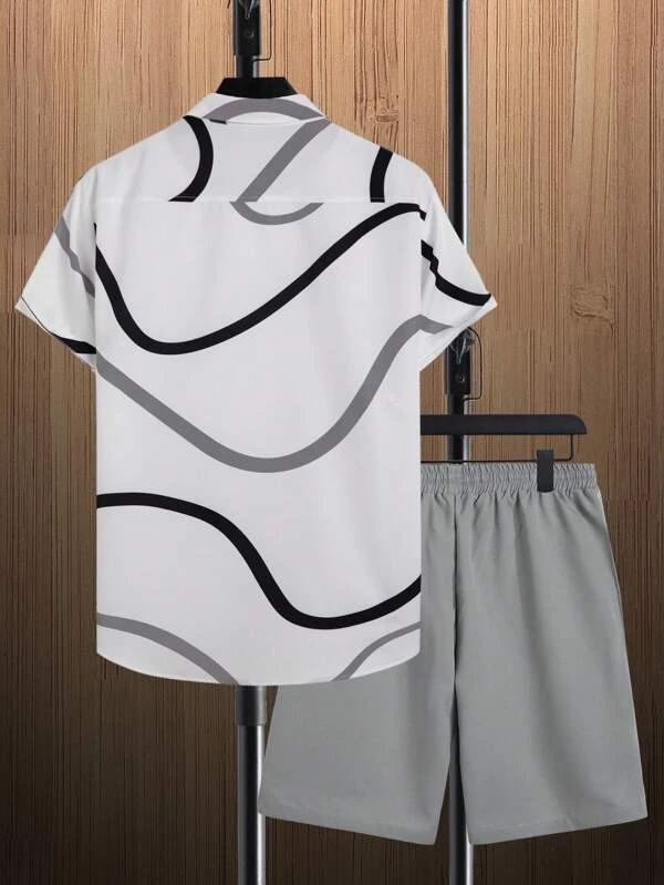 Men's Hawaiian Print Short Sleeve Shirt Set