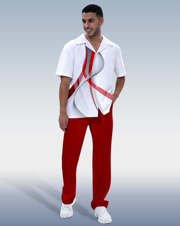 Men's Ombre Print Short Sleeve Shirt Walking Set 286