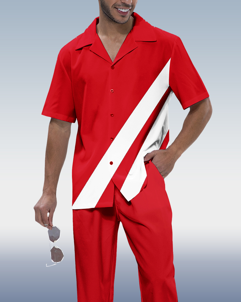 Men's Red Walking Suit 2 Piece Short Sleeve Set
